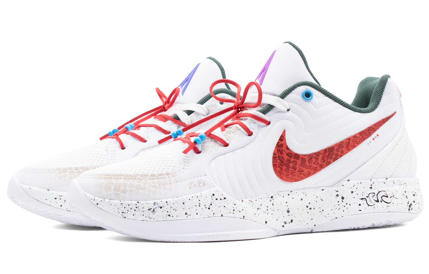 Эти кроссовки, разработанные по индивидуальному заказу, созданы на основе Nike Ja 2 EP - удобных, универсальных, нескользящих и прочных мужских баскетбольных кроссовок с низким верхом белого цвета (версия для внутреннего рынка) с оригинальным артикулом FD7327-101. Вдохновленные на год Змеи по китайскому календарю, кроссовки украшены граффити с изображением змеи на пятке. Весь корпус кроссовок перекрашен эксклюзивной краской. Добавлены оригинальные значки и граффити, а также модные эффекты аэрозольной краски.