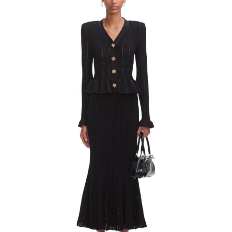 Вязаное платье макси с баской Self-portrait, черный 66 277₽