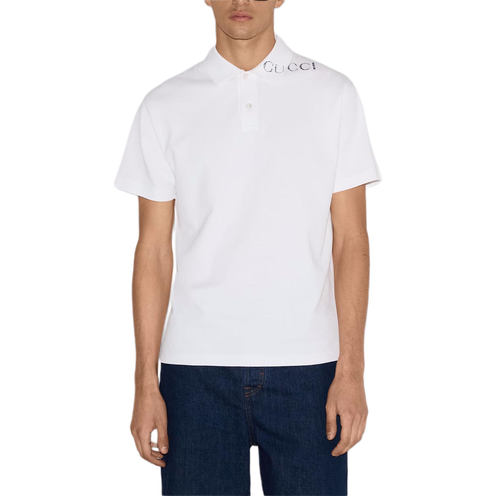 Печатная короткая поло GUCCI, белый