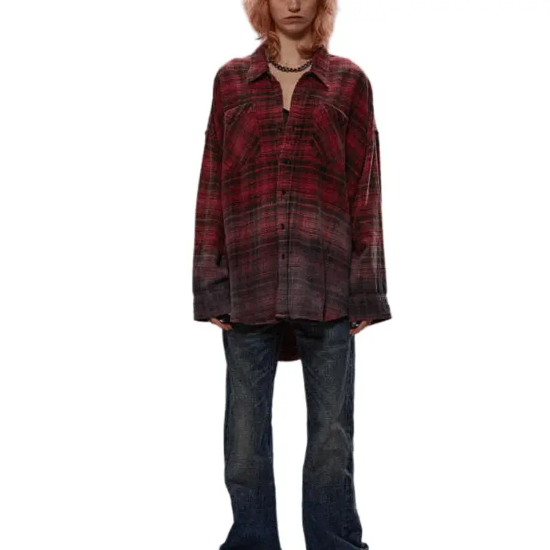 Рубашка в клетку R13, темно-красный