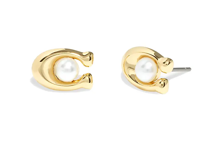 COACH Латунные серьги-гвоздики для женщин Pink/Gold 11 718₽