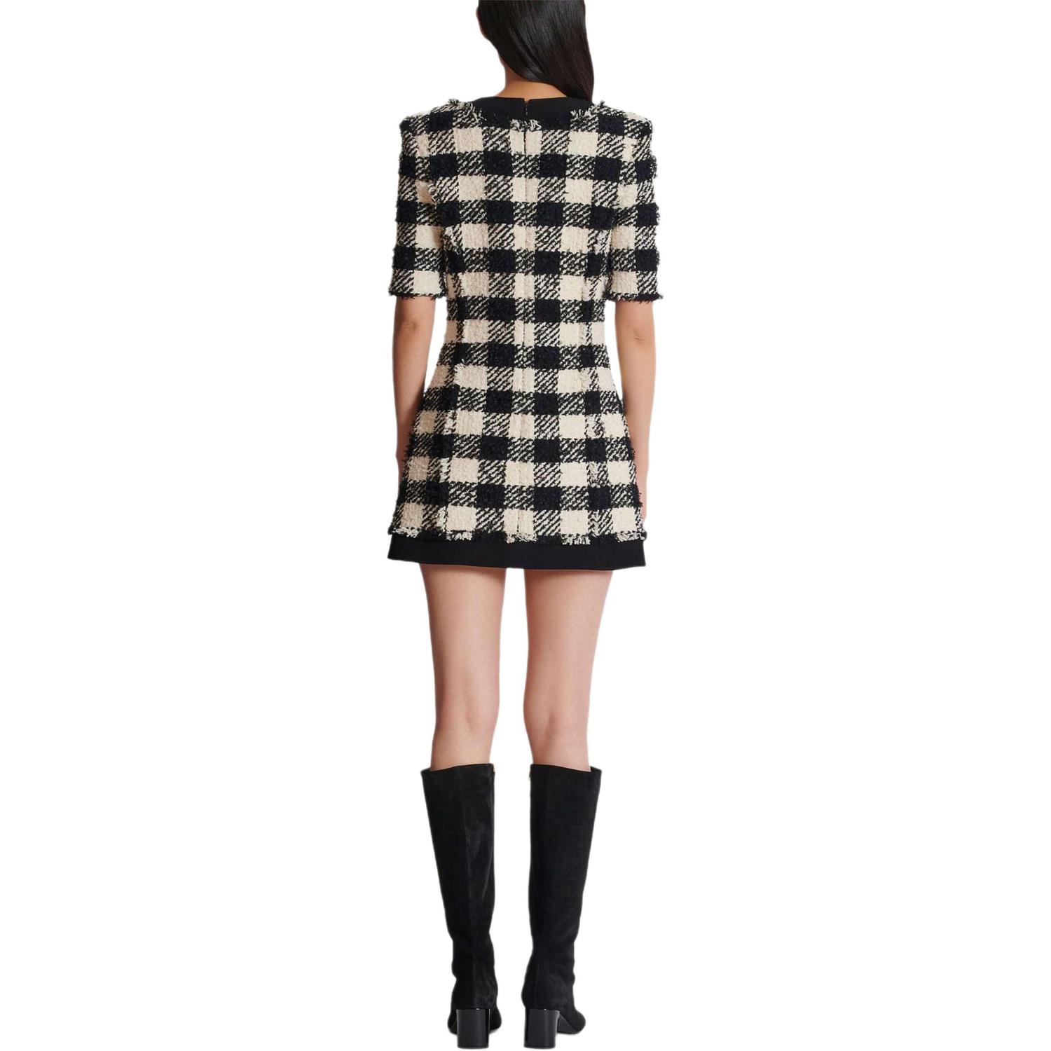 Платье Gingham Tweed BALMAIN, белый