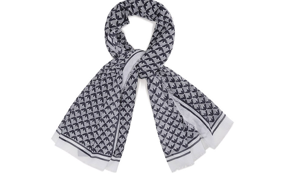EMPORIO ARMANI Шелковый шарф Men's Dark Blue White