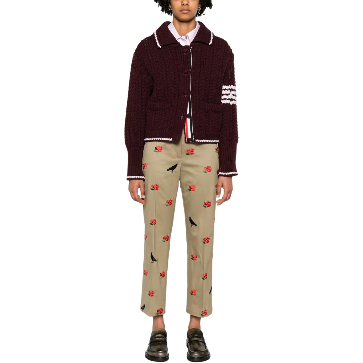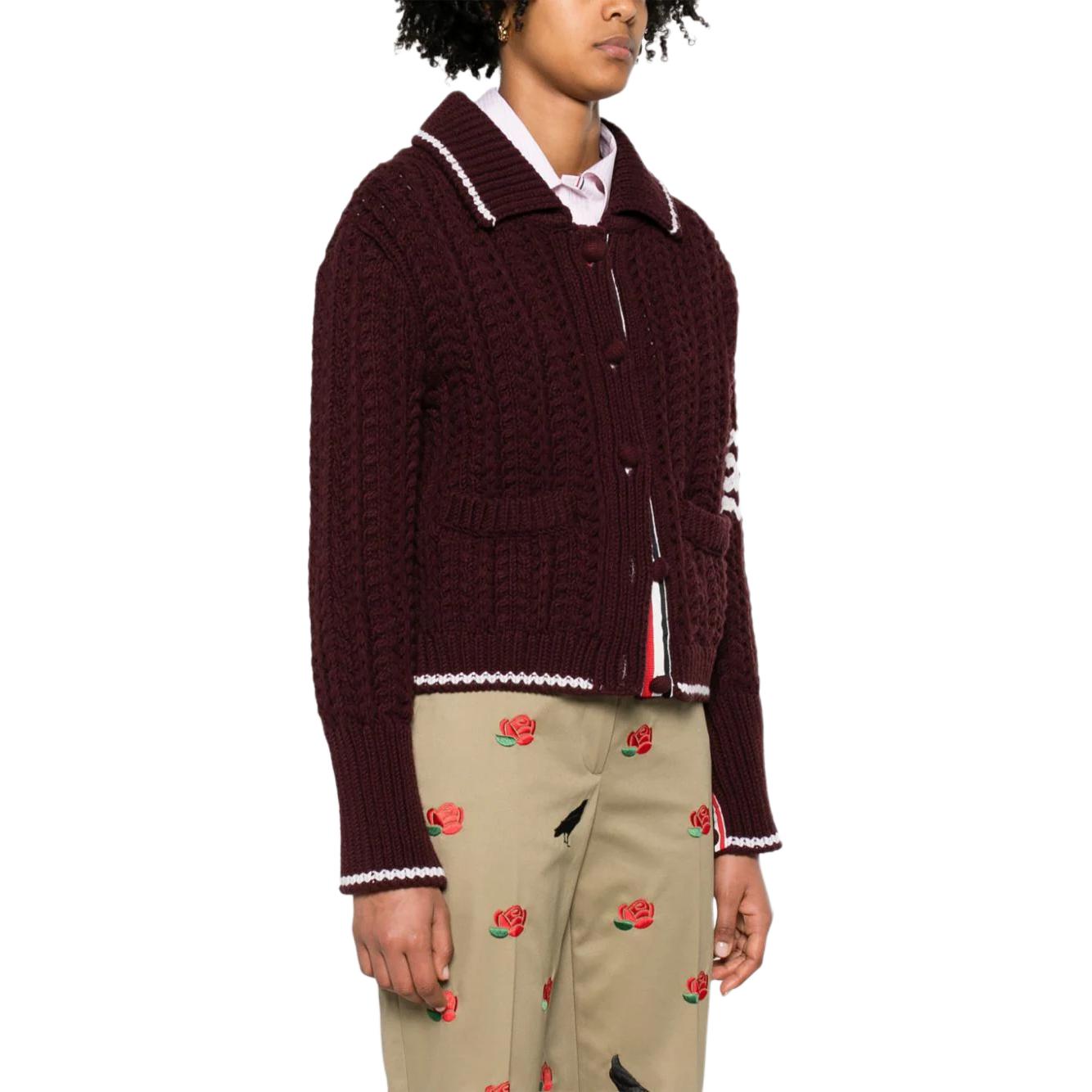 Кардиган из 100% шерсти 4-Bar THOM BROWNE, Burgundy