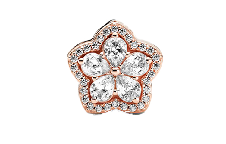 Этот шарм с паве, мерцающий снежинками, воспевает радость праздников. Изготовленный из Pandora Rose (уникального сочетания металлов, покрытых 14-каратным розовым золотом) и доработанный вручную, он имеет симметричную форму, вдохновленную чудесами зимы. В центре шарма находится драгоценный камень грушевидной формы, создающий эффект снежинки. Кольцо из прозрачных кубических цирконий окружает шарм, а ажурные сердечки украшают боковые стороны. Сочетайте это сверкающее украшение с другими зимними шармами, чтобы создать эффектный праздничный образ.