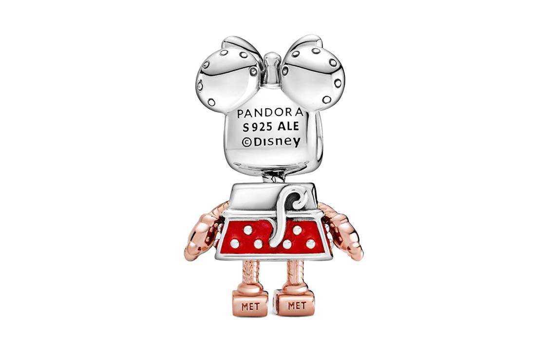 Металл: серебро 925 пробы и Pandora Rose (уникальный сплав меди и серебра). Эмаль: красная. Узор/форма: робот Минни Маус. Особенности: двухцветный дизайн, верхняя часть тела и конечности из серебра 925 пробы и Pandora Rose; ушки украшены винтиками; усики и бантики из красной эмали на голове; квадратное тело и ноги; узор из змеиных костей на конечностях; подвижные конечности и шея/тело. Вдохновение: вдохновлено роботами.