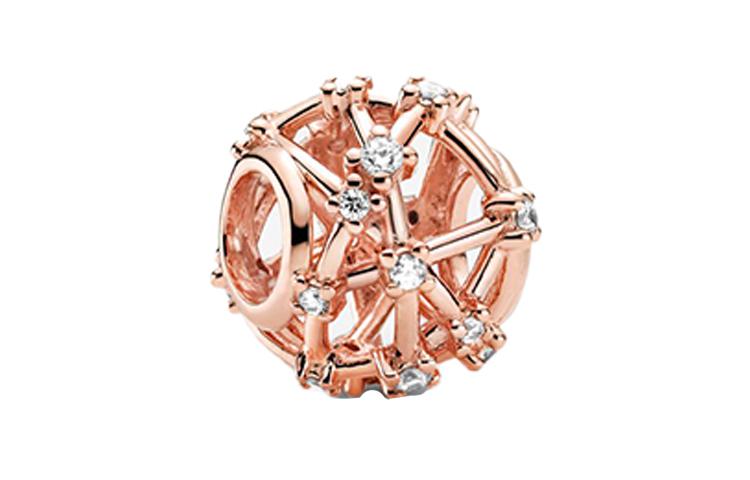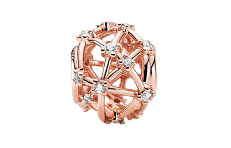 Ажурные шармы в форме звезд будут сопровождать вас, когда вы будете смотреть на ночное небо в поисках ответов. Один из них выполнен из Pandora Rose (уникального сочетания металлов, покрытых 14-каратным розовым золотом) и отделан вручную, а другой - из стерлингового серебра 925 пробы. Вдохновленный украшением на космическую тематику из архива Pandora, каждый прозрачный драгоценный камень закреплен вдоль округлых ажурных линий, имитирующих звездообразование в космосе. Дополните этот браслет другими шармами в форме созвездий, чтобы выразить свою тоску по Вселенной.