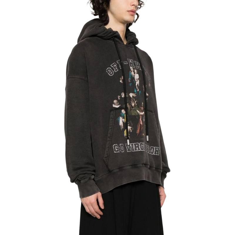 Офф-уайт худи с принтом из хлопка OFF-WHITE, черный