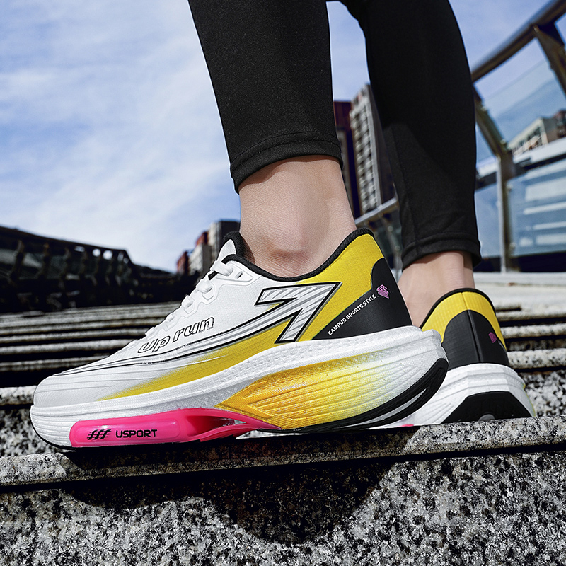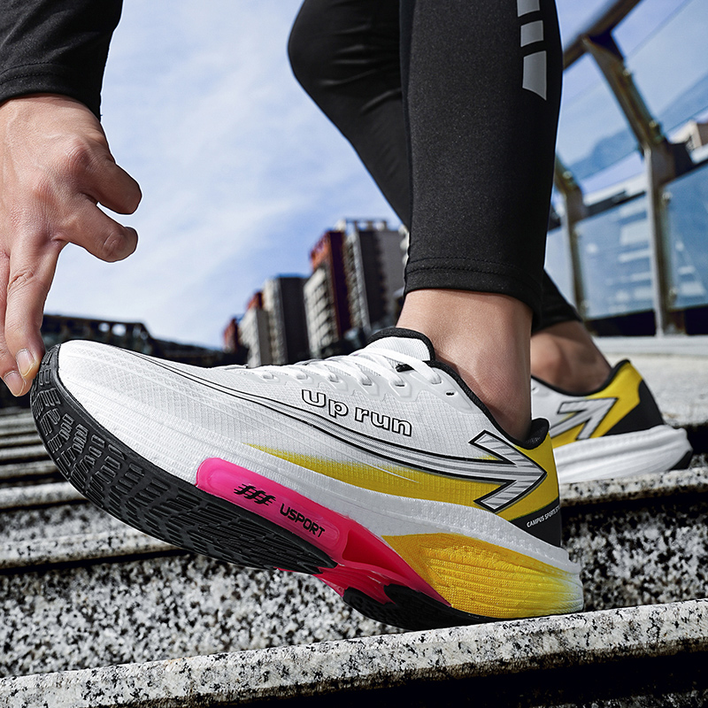 Эти кроссовки подходят для пробежек на 6-20 километров и применимы для различных сценариев бега, таких как утренние пробежки, вечерние пробежки и поездки на работу. Они также подходят для тренировок по физической подготовке студентов, соревнований по легкой атлетике и различных тренировок по навыкам. Верх изготовлен из дышащей ткани и материала TPU, что позволяет легко надевать и снимать их, не чувствуя себя неловко. Бесшовная накладка и процесс 3D-печати придают общему дизайну красивую, неровную эстетику. Мягкий воротник защищает лодыжку, а удобная промежуточная подошва использует материал, похожий на попкорн, в сочетании с TPU и RB для легкой амортизации и высокоэнергетического отскока, помогая вам с каждым шагом. Высокоэластичный материал попкорна в промежуточной подошве легкий, мягкий и упругий, с утолщенной и усиленной пяткой для сохранения легкости промежуточной подошвы. Каждая мелочь ощущается как ходьба по хлопку. Многотекстурные противоскользящие и износостойкие резиновые накладки и антискручивающие пластины из ТПУ обеспечивают более точное прилегание к точкам давления, предотвращая боковое опрокидывание и обеспечивая мощную отдачу, легко справляясь с различными дорожными покрытиями, гарантируя беззаботные длительные поездки.
