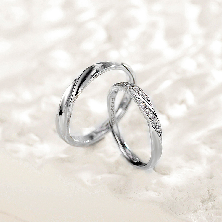 FANCI Пара унисекс колец из серебра S925 с цирконом