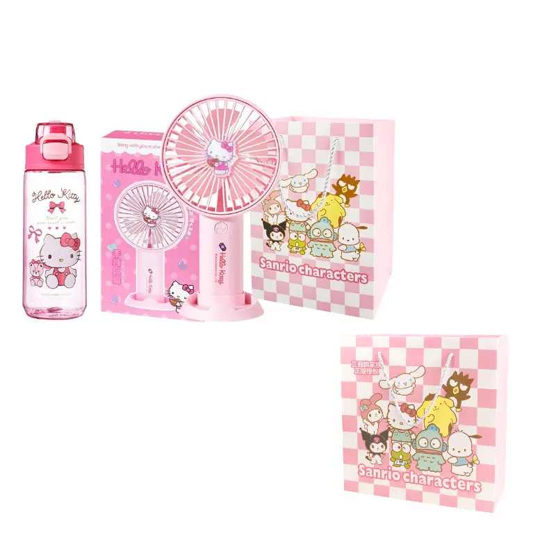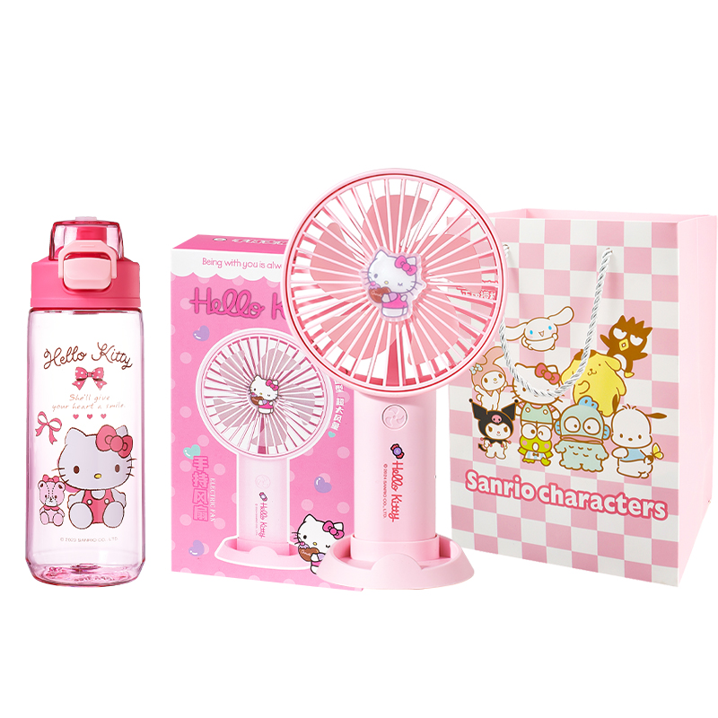 Комплекты одежды: ручные вентиляторы Hello Kitty + пластиковый стаканчик для воды + сумка для покупок