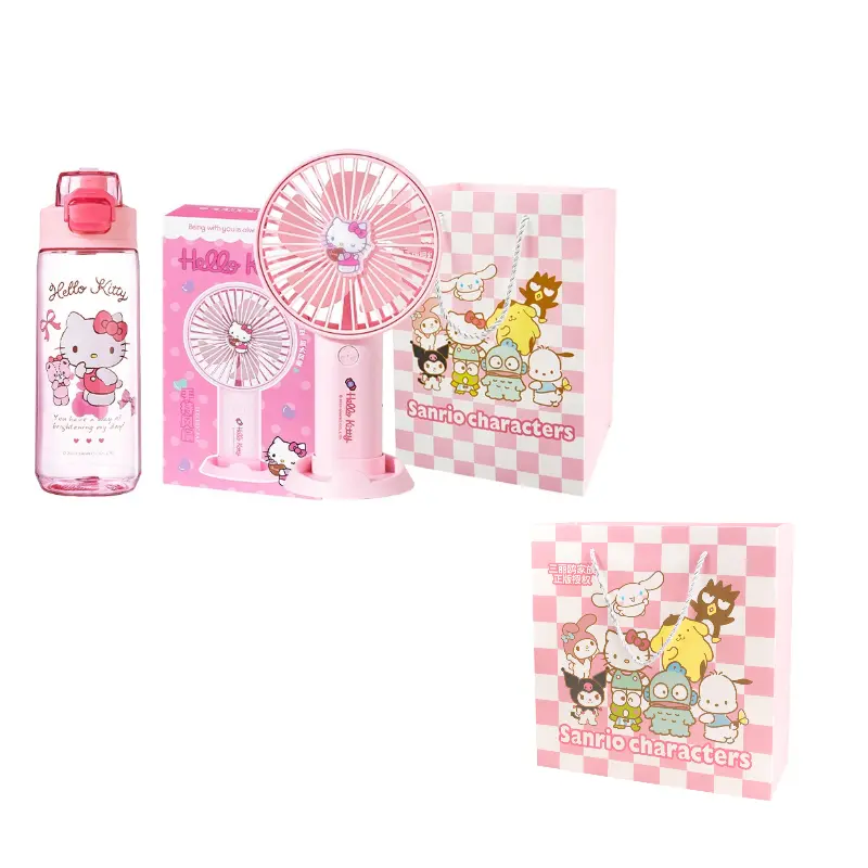 Комплекты одежды: ручные вентиляторы Hello Kitty + пластиковый стаканчик для воды + сумка для покупок