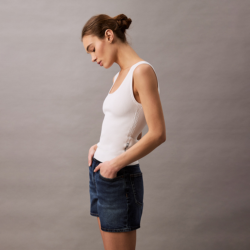 Calvin Klein SS25 Вязаный топ для женщин Moon White