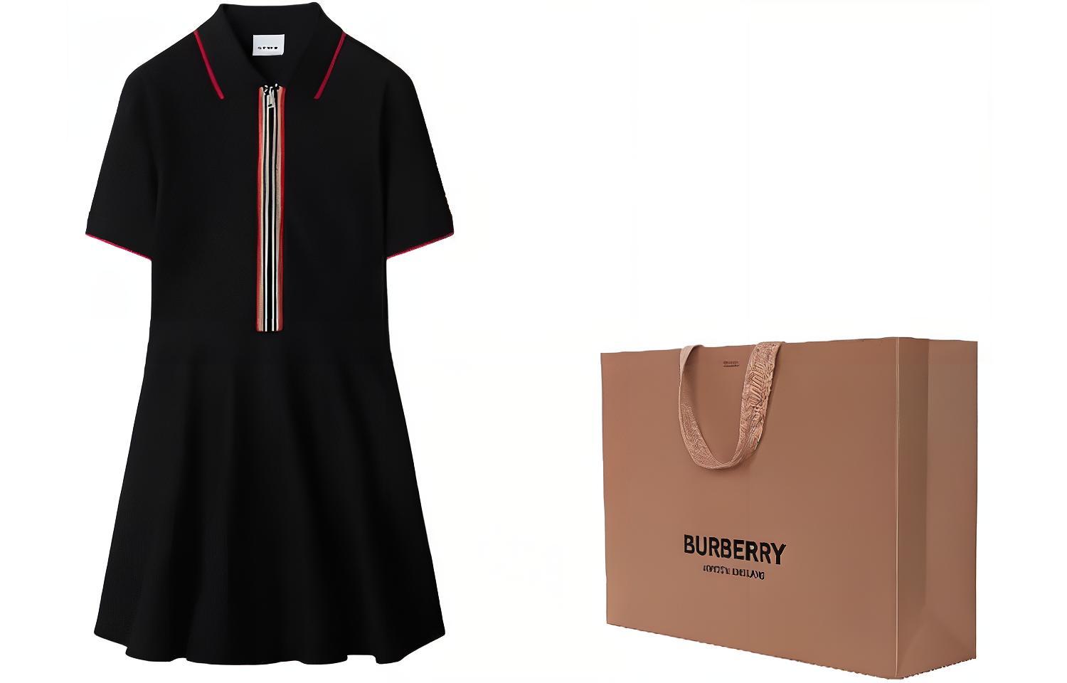 Burberry Женское черное платье с короткими рукавами