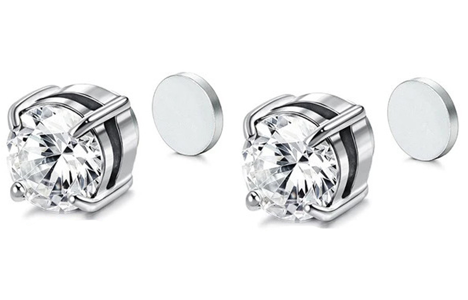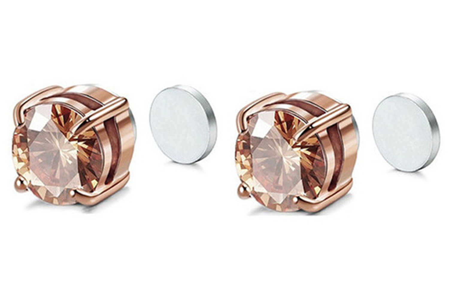 Характеристики товара: Круглые магнитные серьги-гвоздики из циркония - золото