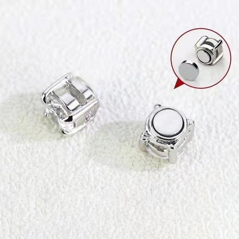Характеристики товара: Круглые магнитные серьги-гвоздики из циркония - серебро
