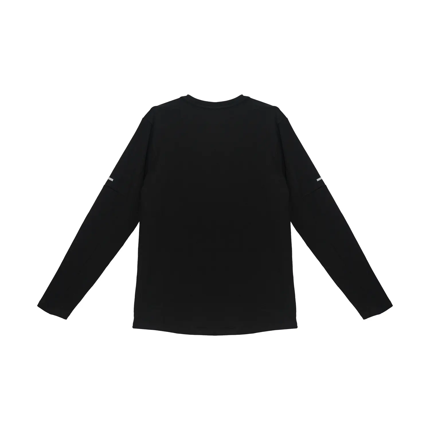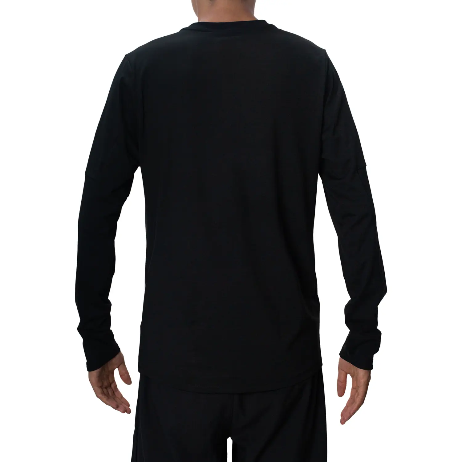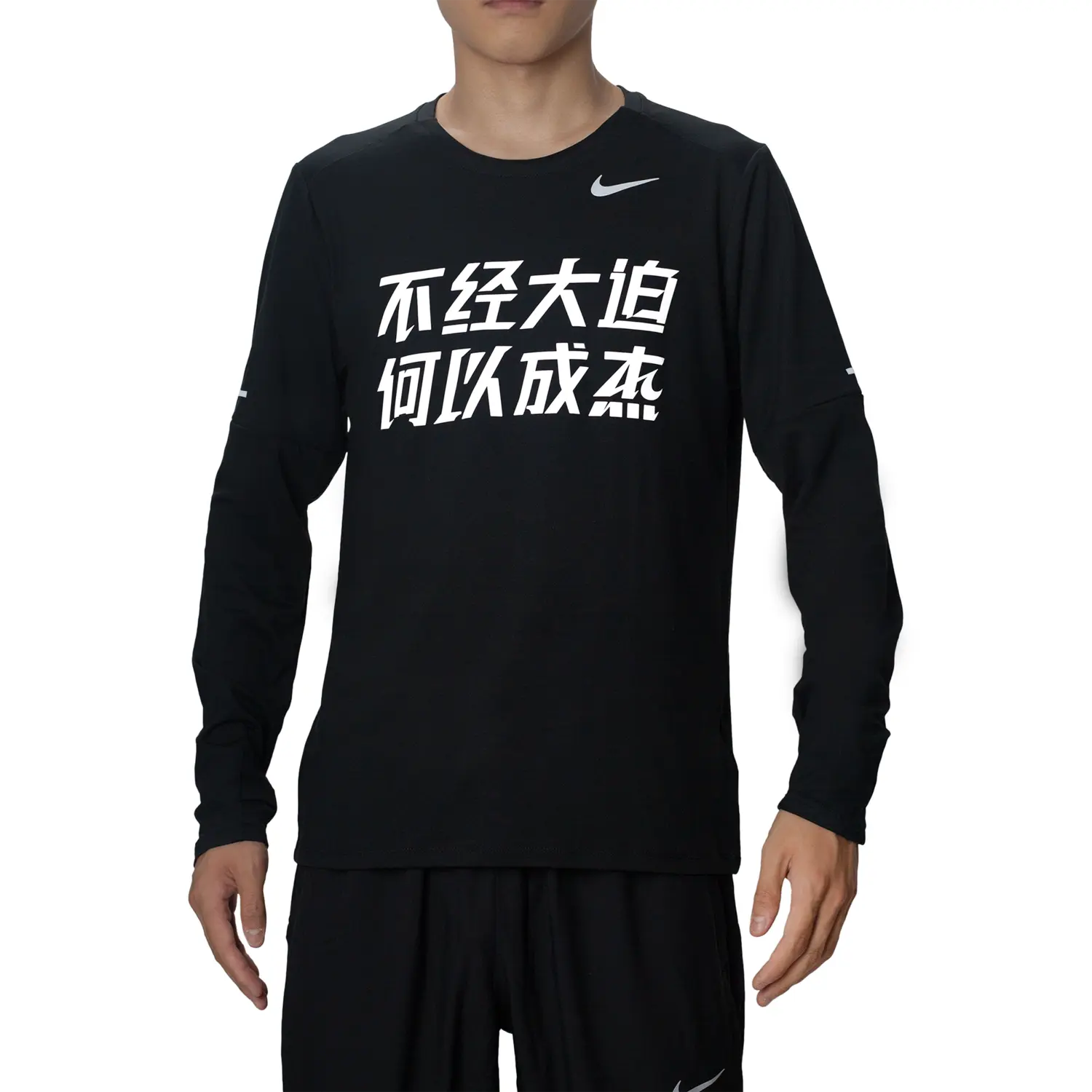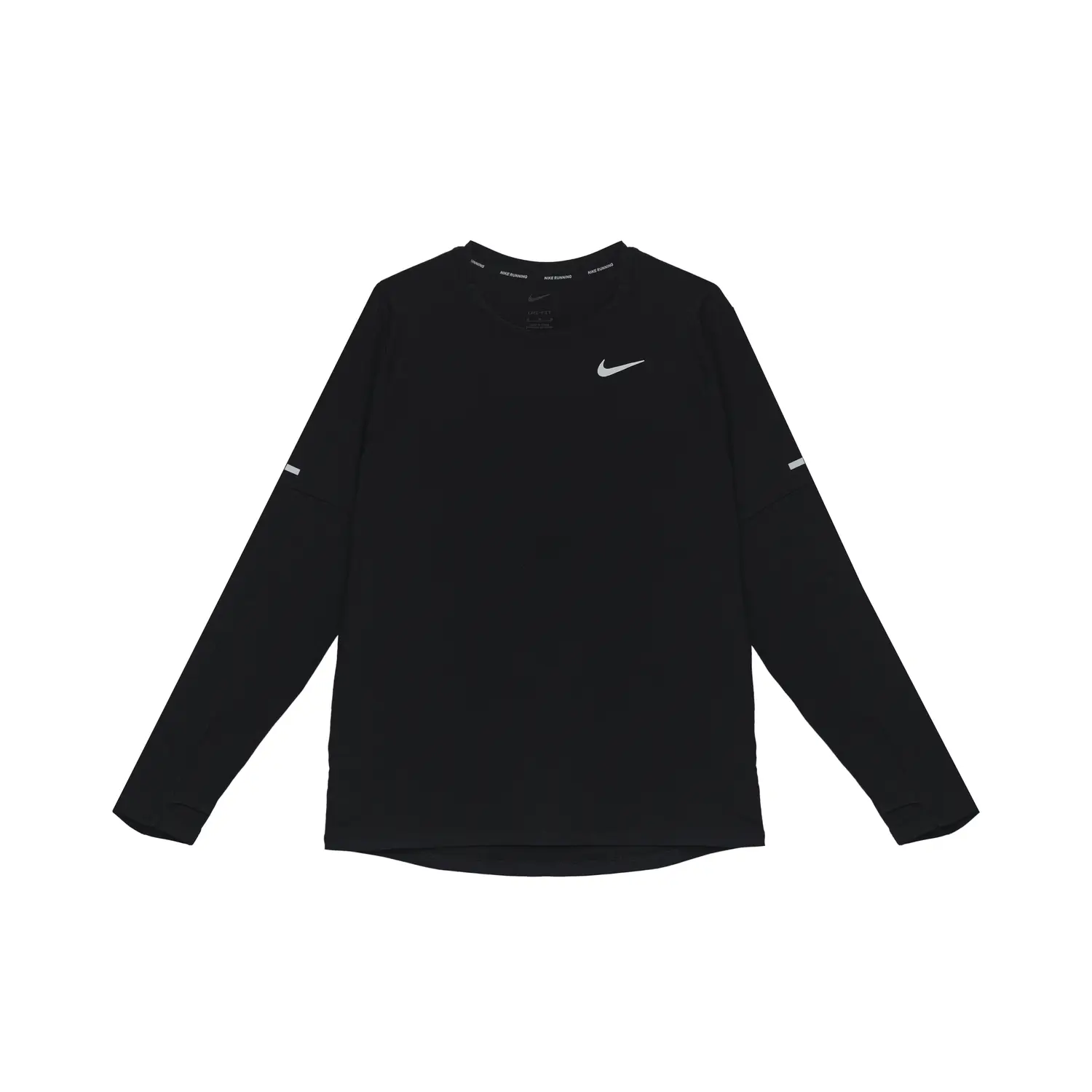 Этот предмет одежды, изготовленный на заказ, создан на основе оригинальной быстросохнущей футболки Nike Dri-Fit с длинным рукавом и светоотражающим логотипом, для тренировок и бега, черного цвета. В связи с особенностями процесса производства и материалов, этот предмет одежды следует беречь от острых предметов, длительного намокания и сушки при высоких температурах.