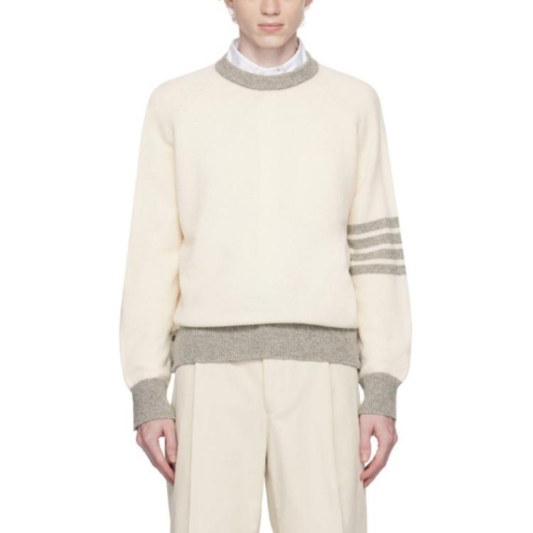 Вязаный свитер с круглым вырезом THOM BROWNE, белый