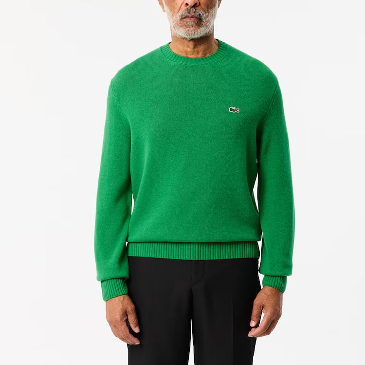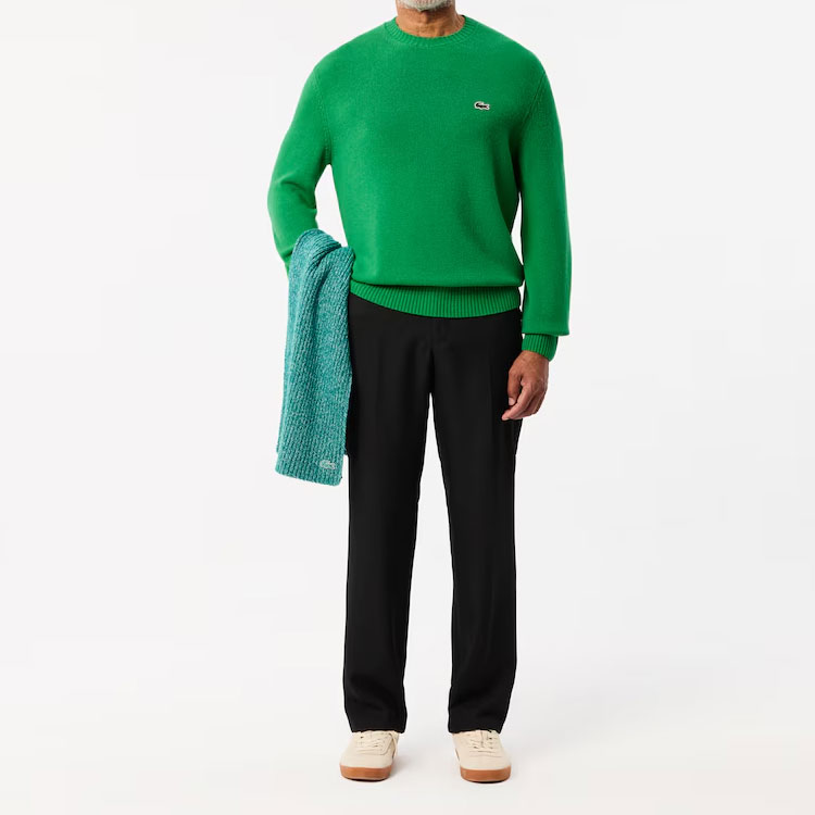 Шерстяной свитер с круглым вырезом LACOSTE, зеленый