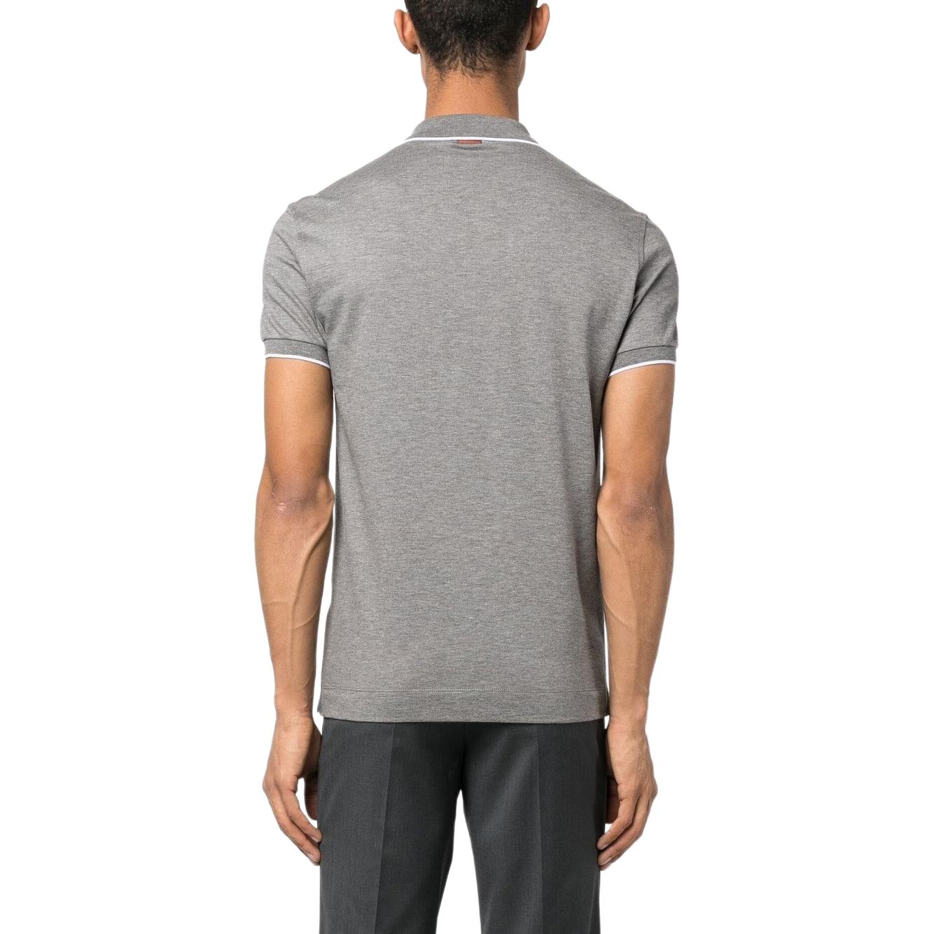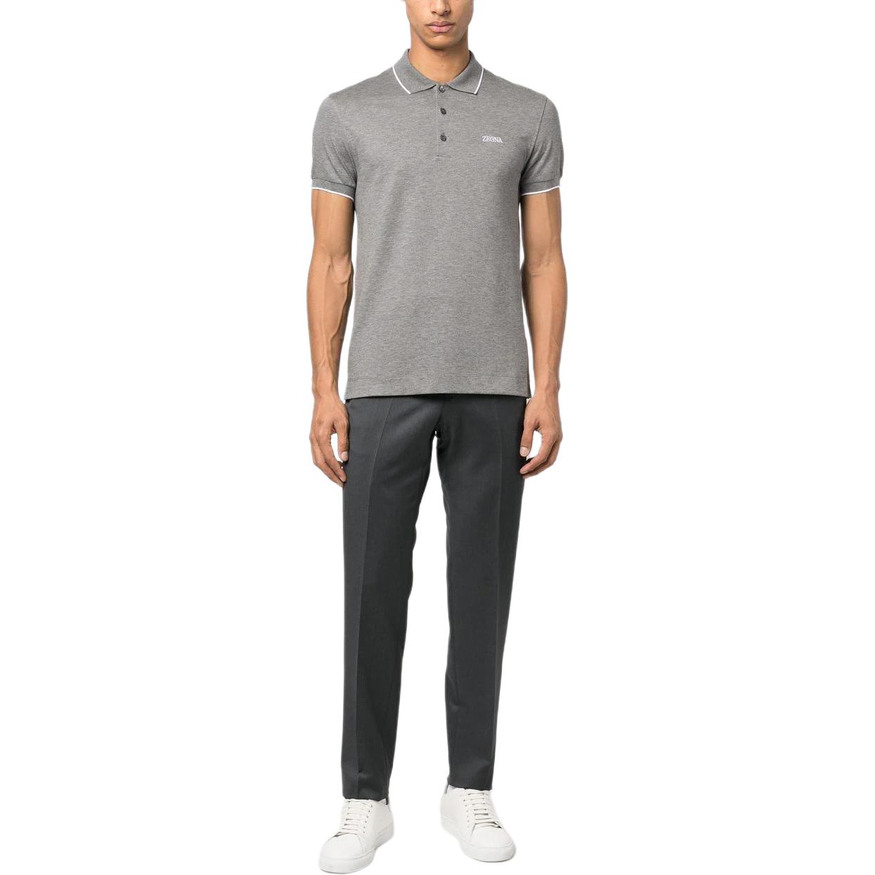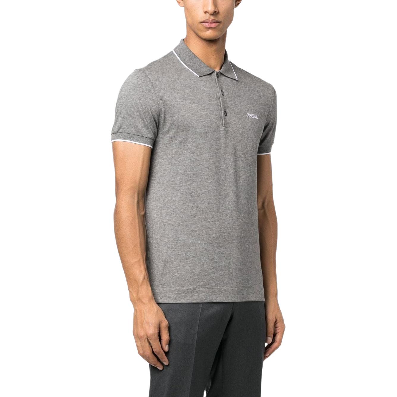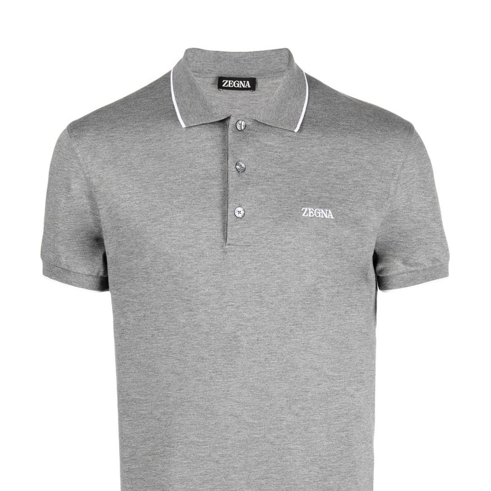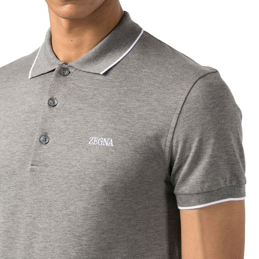 Поло с вышитым логотипом и воротником Zzegna, серый