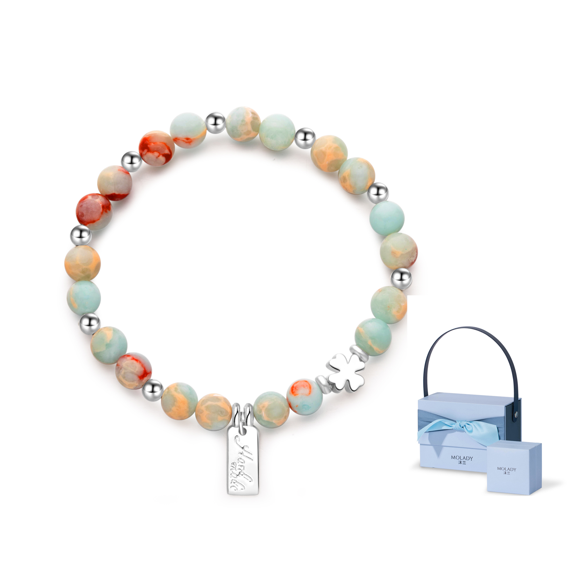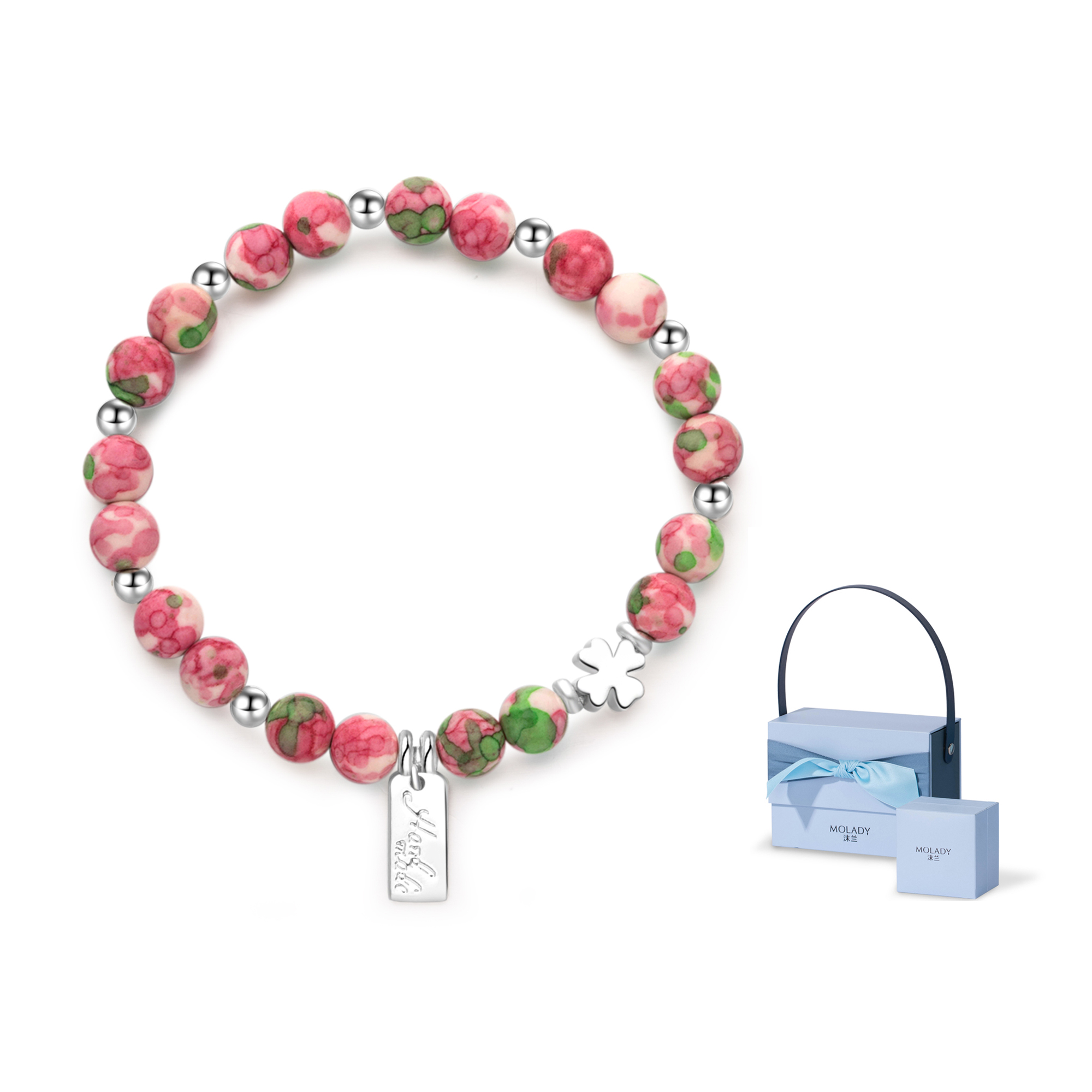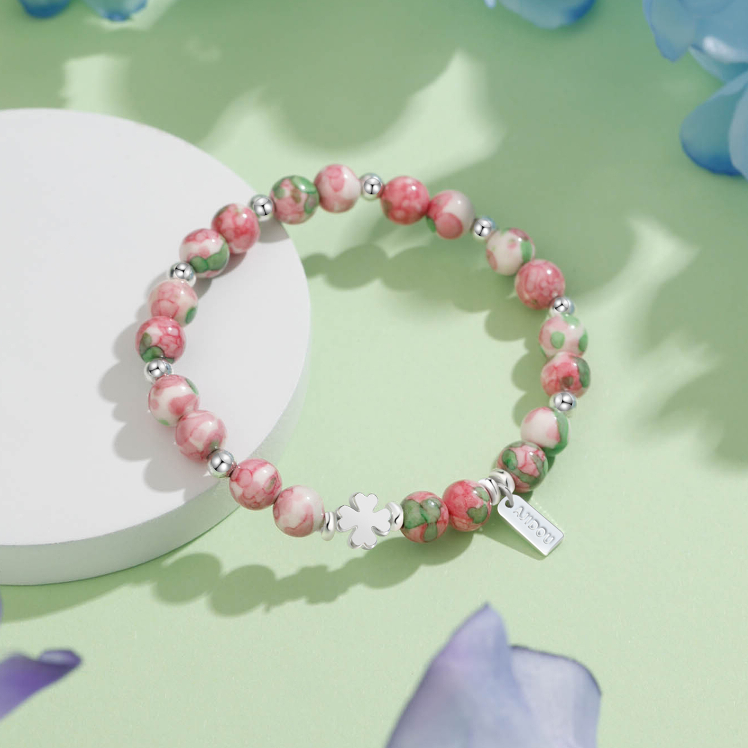Цвет: разноцветный браслет из бусин с четырехлистным клевером, красный [стандартная фирменная коробка]