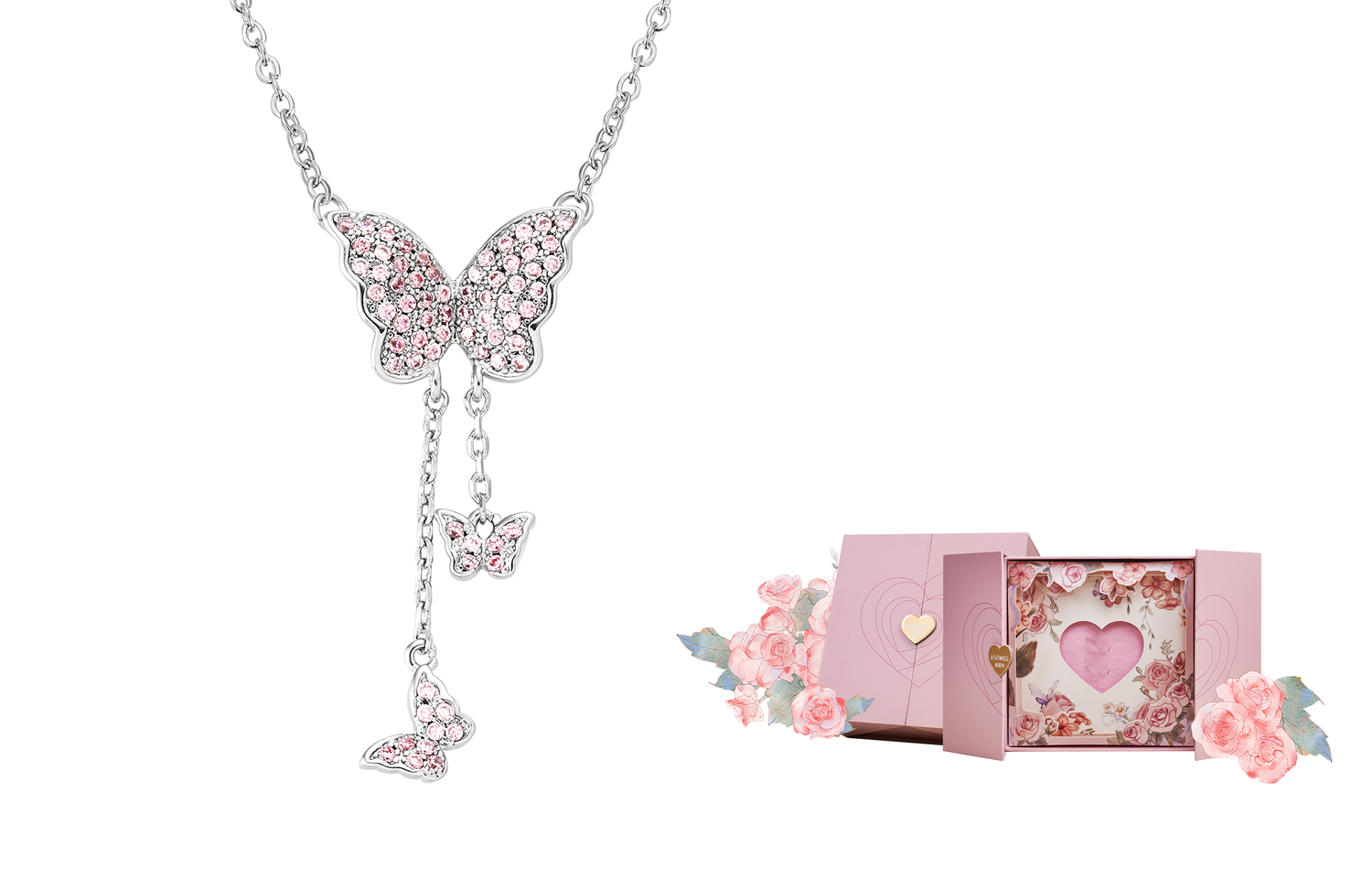 Цвет: колье с розовыми бриллиантами и кисточками + подарочная коробка с розой-признанием