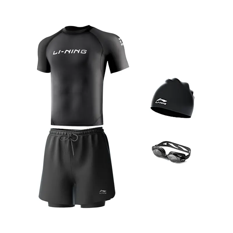Цвет: черный купальник + черные шорты для плавания + очки для плавания + шапочка для плавания, комплект из четырех предметов