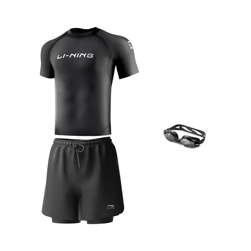 Цвет: черный купальник + черные плавки + шапочка для плавания. Комплект из трех предметов.