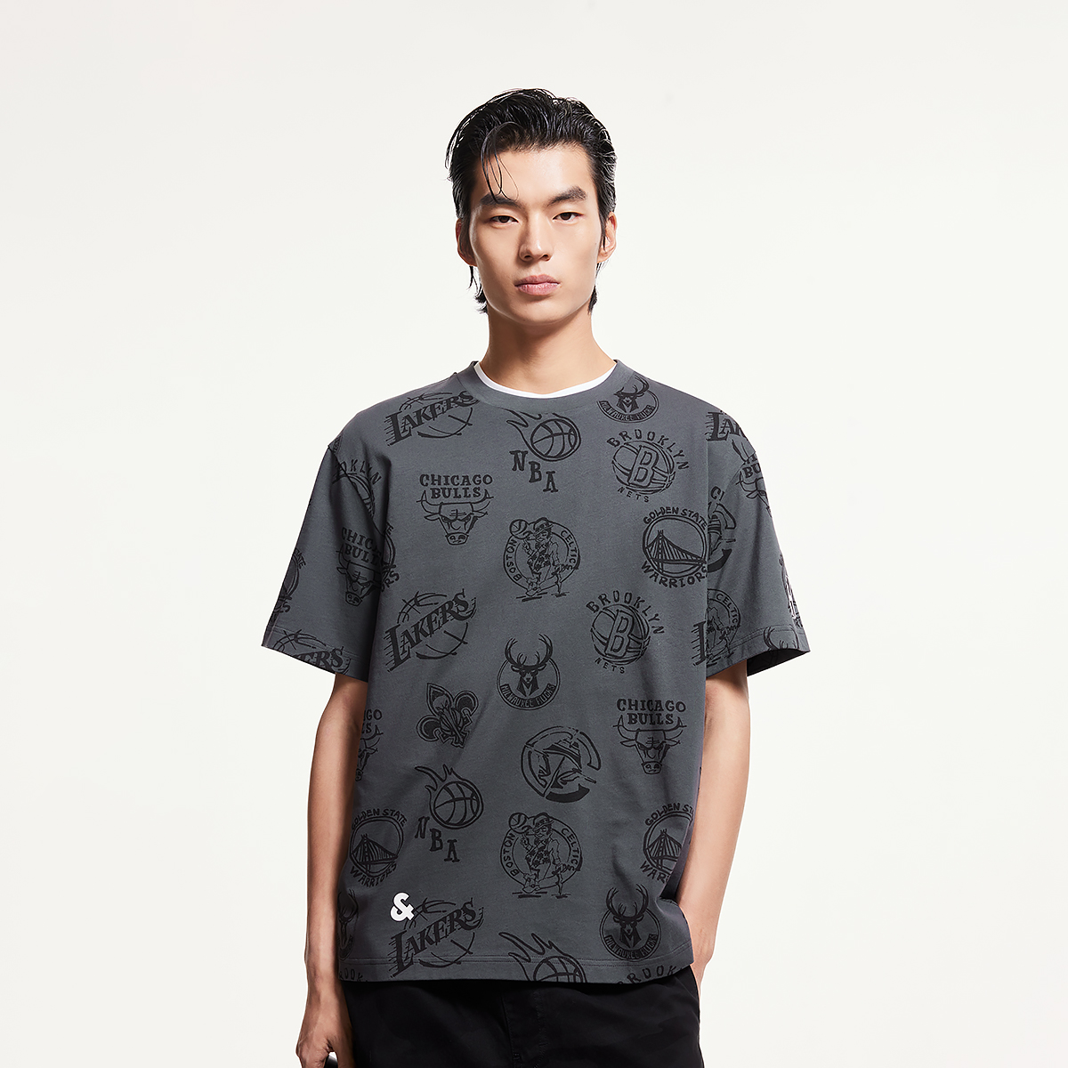 1. Функциональные преимущества: 2. Преимущества посадки: слегка свободный крой. 3. Преимущества дизайна: ребристый круглый вырез горловины; принт с логотипом команды по всей поверхности; нашивка с логотипом на левом рукаве; декоративная нашивка на спине.