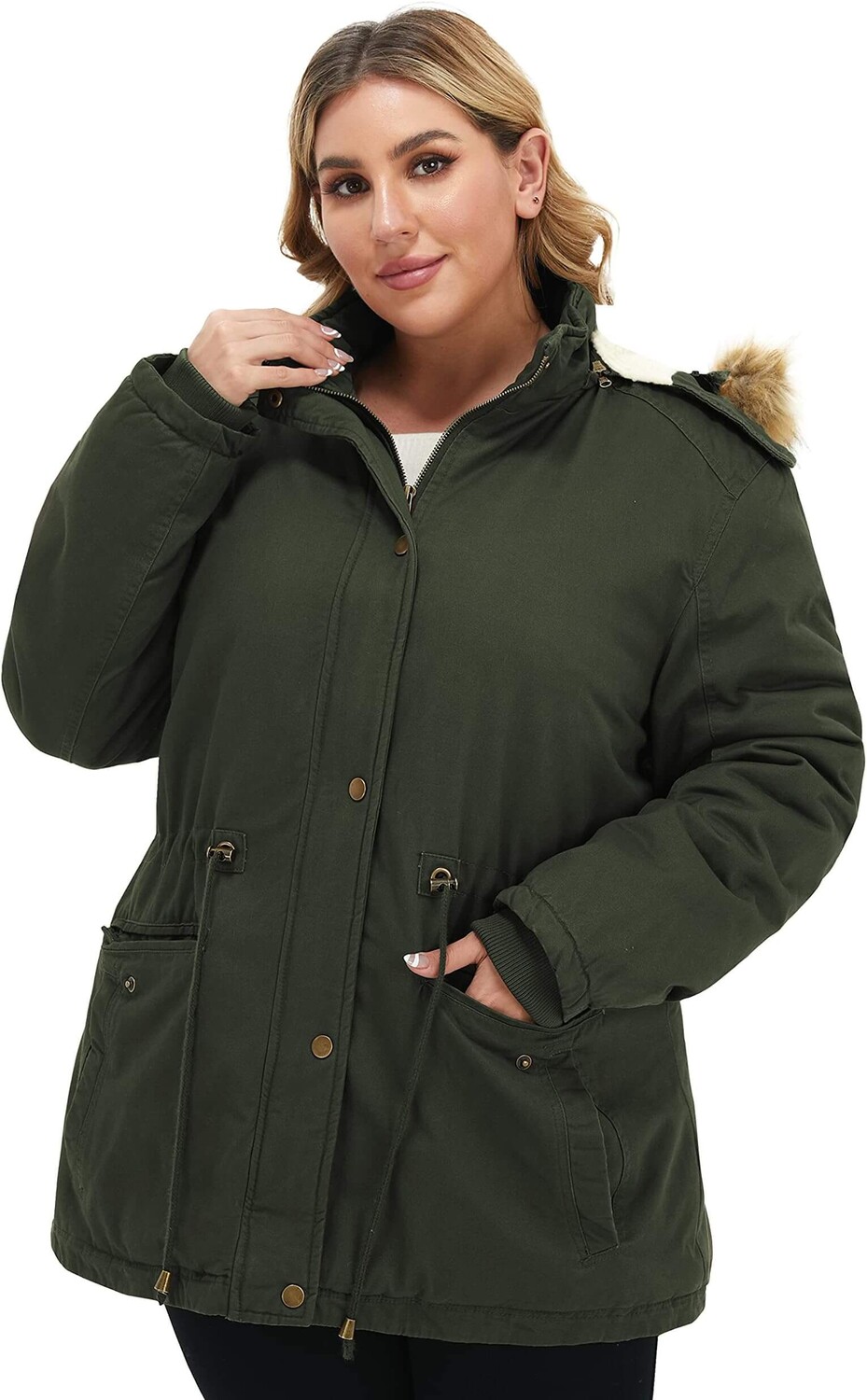 Женская зимняя куртка большого размера от Soularge создана для того, чтобы вы чувствовали себя стильно и уютно в самую холодную погоду. Мягкий и дышащий материал обеспечивает максимальный комфорт, а шикарный дизайн подчеркивает вашу фигуру в течение всего сезона. Практичный капюшон, карманы, застежка-молния во всю длину спереди на планке с застежкой. Боковые карманы на пуговицах сохранят ценности в безопасности, флисовая подкладка кармана согреет ваши руки одновременно.
