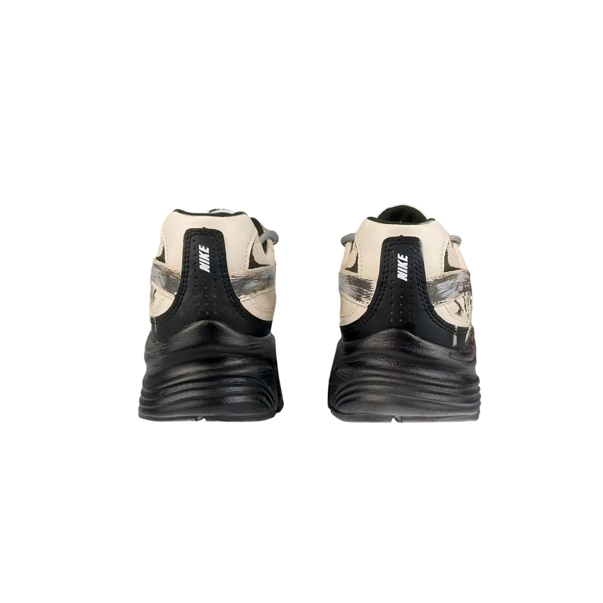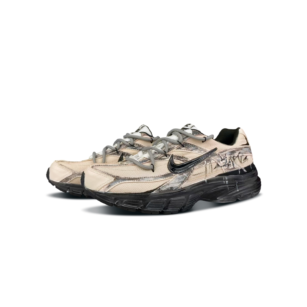 Эти кастомные кроссовки основаны на модели Nike Initiator. Вдохновением для них послужила постапокалиптическая эстетика, воплощенная в граффити, которое преображает обветренные стены, холод машин и безжизненную пустыню, создавая уникальные текстуры и оттенки. Вместо традиционной шнуровки они оснащены шнурком, создающим бунтарский и авангардный акцент, идеально отражая стиль и дерзость постапокалиптической функциональности. Ненасыщенный, изысканный цвет серо-хаки служит универсальным «модным фильтром», подходящим для любого случая и помогающим законодателям моды легко выделиться.