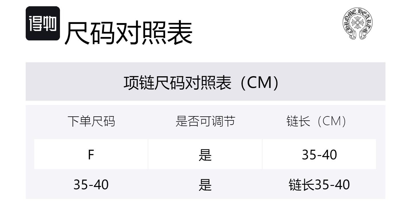 У размера F длина цепочки составляет 35-40; оба размера изделия одинаковы.