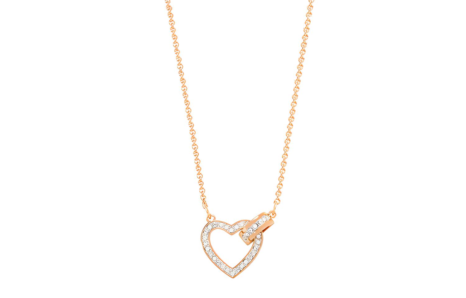 Это колье-бестселлер выражает вашу любовь. Переплетающиеся элементы символизируют уникальную связь между двумя людьми. Покрытие из розового золота, украшенное прозрачными кристаллами паве, сияет и обладает уникальным блеском. Идеально подходит для повседневной носки и легко сочетается с другими нарядами, что делает его идеальным подарком.