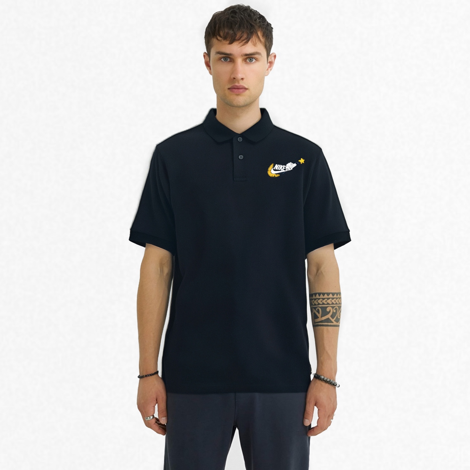 Этот сшитый на заказ предмет одежды использует черную мужскую поло с короткими рукавами и однотонным логотипом Nike. Он имеет вышитые детали на однотонной рубашке поло с оригинальным дизайном из серии Night Star, вышитым вокруг логотипа, добавляя цветовой акцент черному фону, делая его очень уникальным. Небольшие вариации в размещении рисунка могут встречаться между изделиями. В связи с особым характером его изготовления и материалов, пожалуйста, избегайте царапин острыми предметами, длительного замачивания и сушки при высокой температуре. Важные примечания: 1. Это готовая одежда, сшитая на заказ; индивидуальная настройка в настоящее время не поддерживается. 2. Одежда, сшитая на заказ, продается по предоплате в полном объеме. После размещения заказа и внесения оплаты, пожалуйста, терпеливо дождитесь завершения настройки. Отправка будет произведена сразу после проверки. 3. Заказы на одежду, сшитую на заказ, не могут быть отменены без уважительной причины после оплаты. 4. Этот изготовленный на заказ продукт является подлинным, он был проверен и аутентифицирован платформой Dewu; пожалуйста, совершайте покупки с уверенностью.