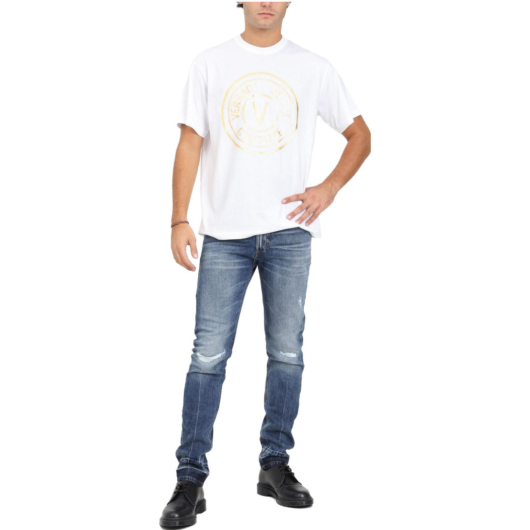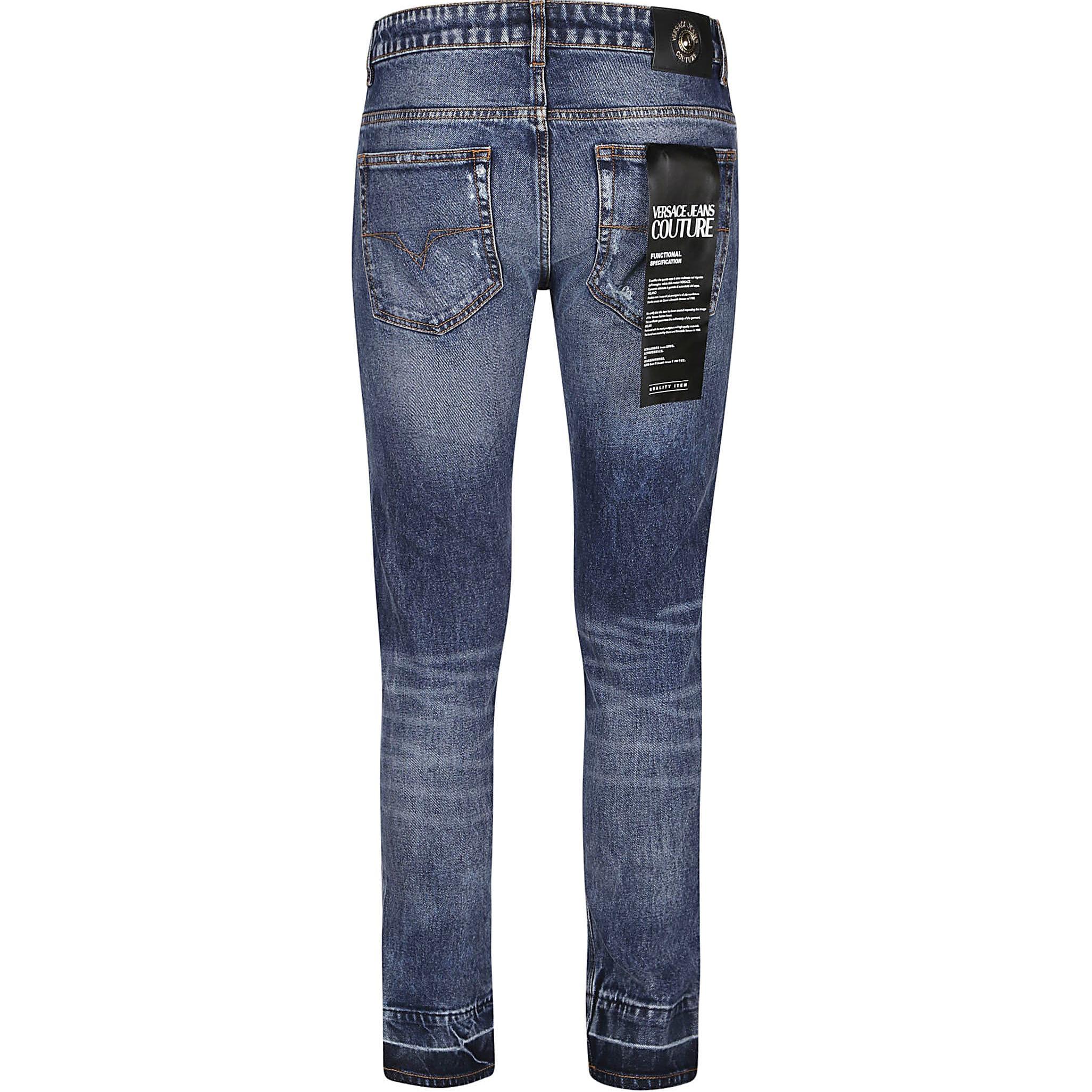 Потертые узкие джинсы VERSACE JEANS COUTURE, синий