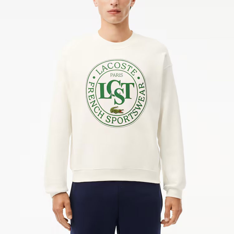 Loose Fit Printed Fleece Sweatshirt LACOSTE, белый
