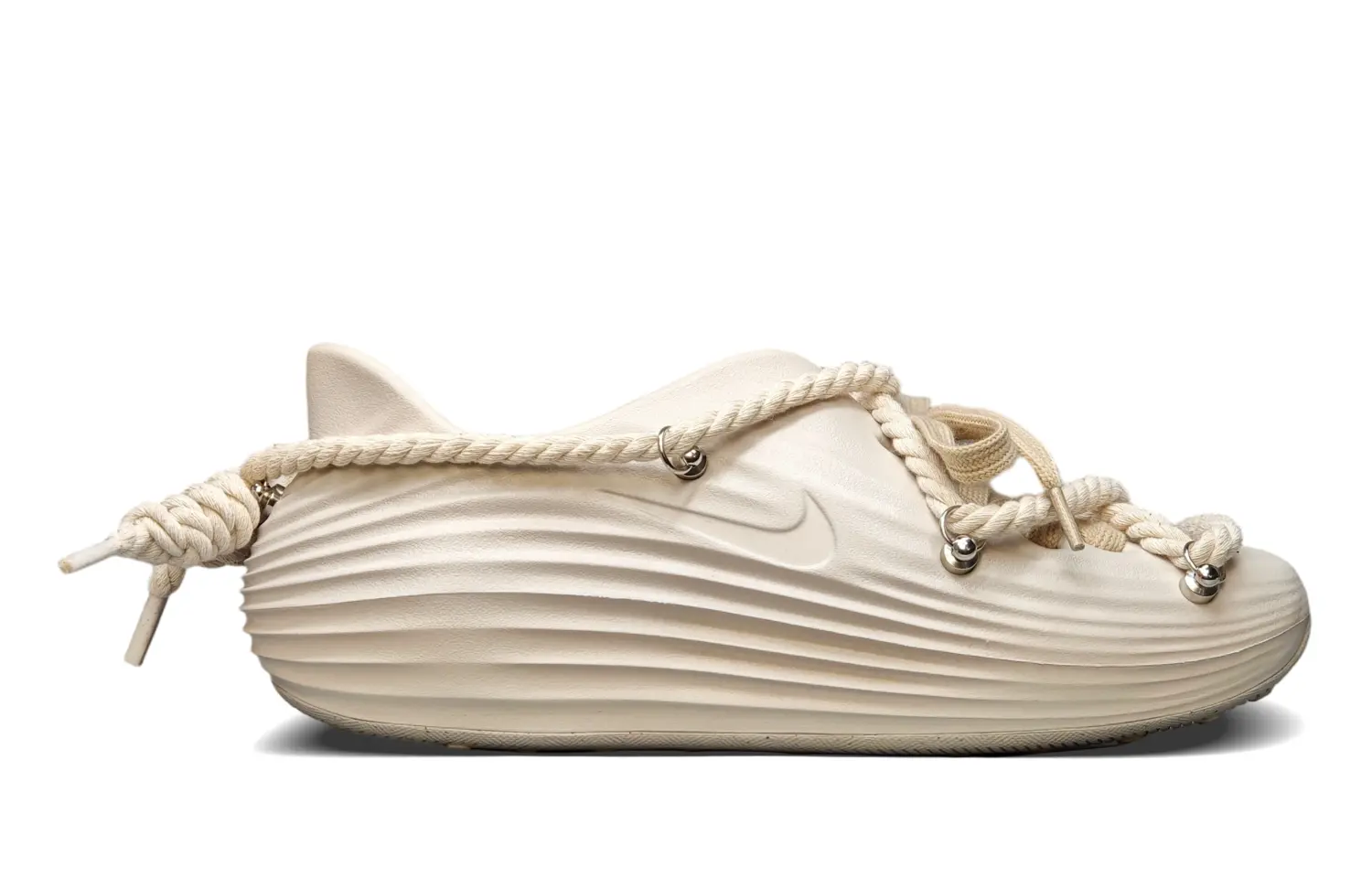 Эти кроссовки, изготовленные на заказ, основаны на оригинальных удобных и универсальных сабо Nike ReactX Rejuven8 Light Orewood Brown светло-золотистого цвета для мужчин и женщин (артикул HV5060-100). Отличительная особенность - обхватывающий ремешок, богатый деталями и невероятно модный.