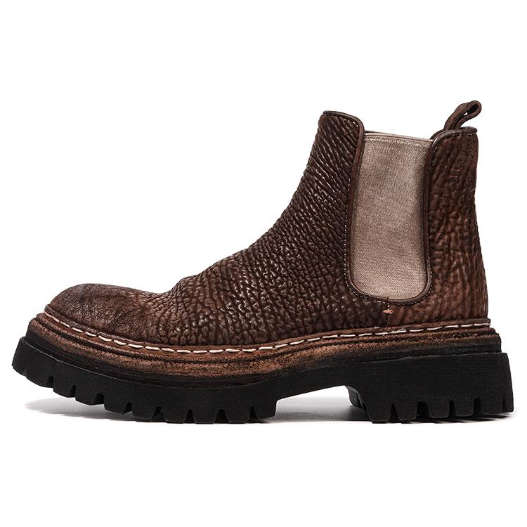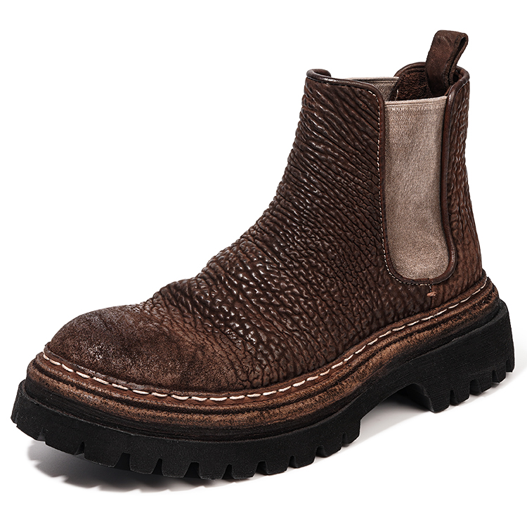 Конская кожа - это кожа премиум-класса, а рубцы и усадка образуют на ней неровную текстуру, напоминающую горы. Она обладает высокой устойчивостью к истиранию и выдерживает испытание временем. По сравнению с глянцевой конской кожей ее текстура более объемная, а после стирки приобретает винтажный, потертый эффект. Подкладка и стелька из конской кожи обеспечивают отличную воздухопроницаемость, впитывание пота и мягкость, обеспечивая комфортное ношение, сохраняя ноги сухими, уменьшая запах и лучше приспосабливаясь к форме стопы по мере использования. Туфли изготовлены из нескольких слоев коровьей кожи с прошитыми вручную краями и выстиранной, высушенной на солнце отделкой. Толстая подошва из вспененной резины сохраняет прочность натуральной кожаной подошвы, обеспечивая большую легкость и комфорт.