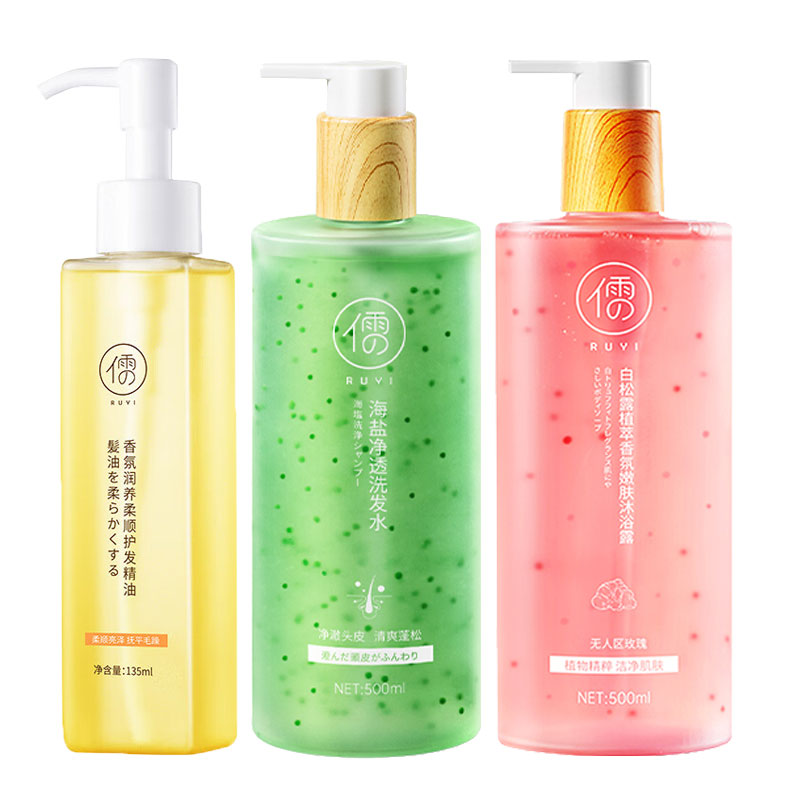 Характеристики: 【Питательное средство для волос】Шампунь против перхоти *1 + восстанавливающий гель для душа *1 + масло для волос *1