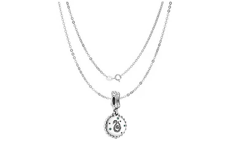 Зачем ждать, пока Распределяющая Шляпа определит ваш факультет? Вместо этого выберите этот волшебный шарм Слизерина из Гарри Поттера, чтобы продемонстрировать свои слизеринские качества: ум и решительность. Этот двухкомпонентный шарм из стерлингового серебра 925 пробы украшен гербом Слизерина, ярко ограненными зелеными кристаллами и гравировкой слов, отражающих особенности «Слизерина». Кольца выполнены в форме герба Хогвартса.