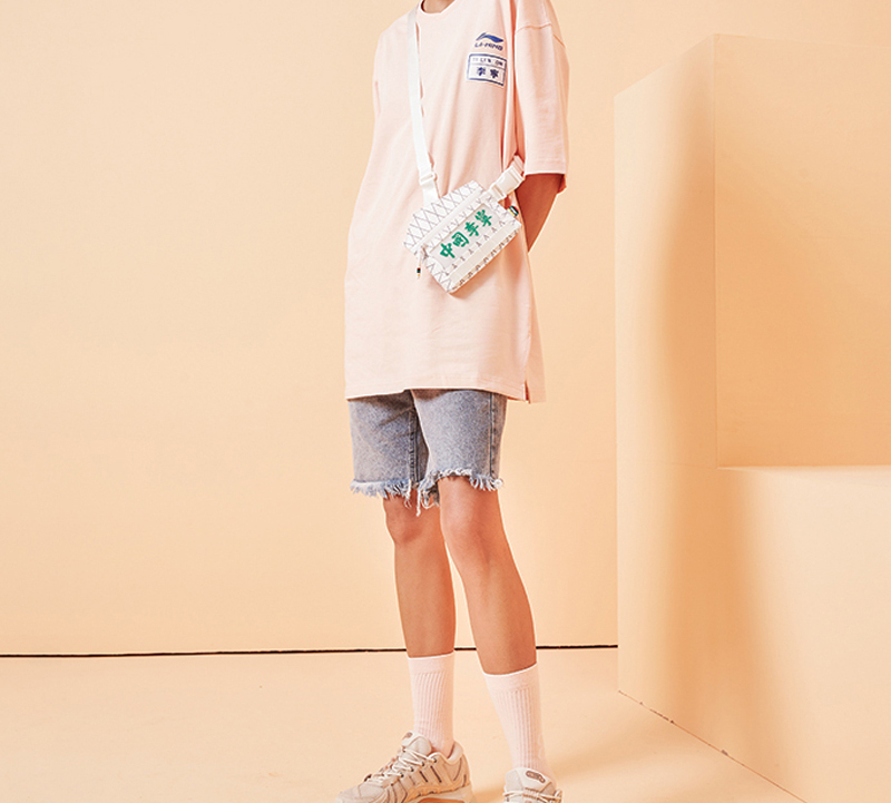 Большое изображение на обороте выполнено в технике LO-FI, объединяющей элементы национального вида спорта - настольного тенниса и логотип «Li Ning», перекликающийся с небольшим логотипом на лицевой стороне, интерпретируя классику, возрождая спортивный тренд и подчеркивая восточное очарование.
