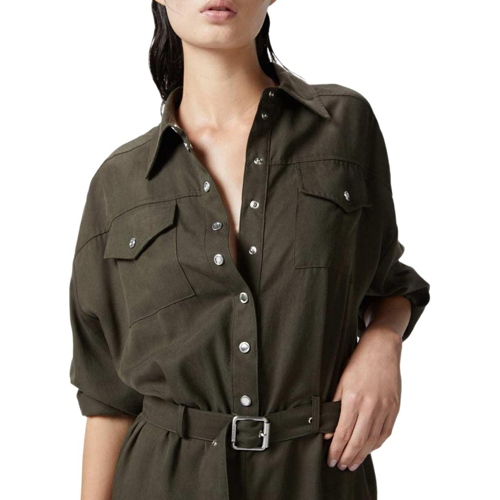 Утилитарное платье-рубашка с поясом PINKO, зеленый