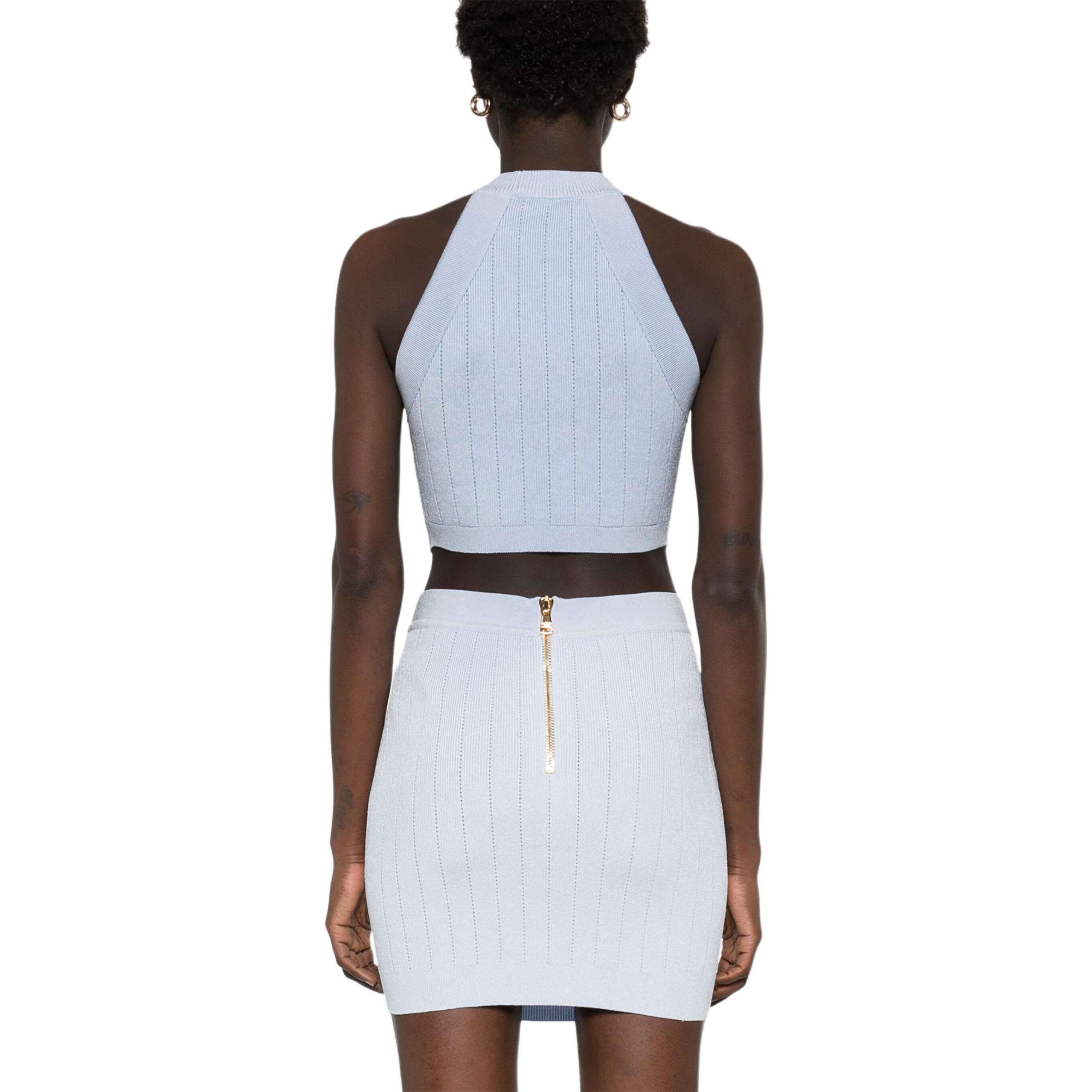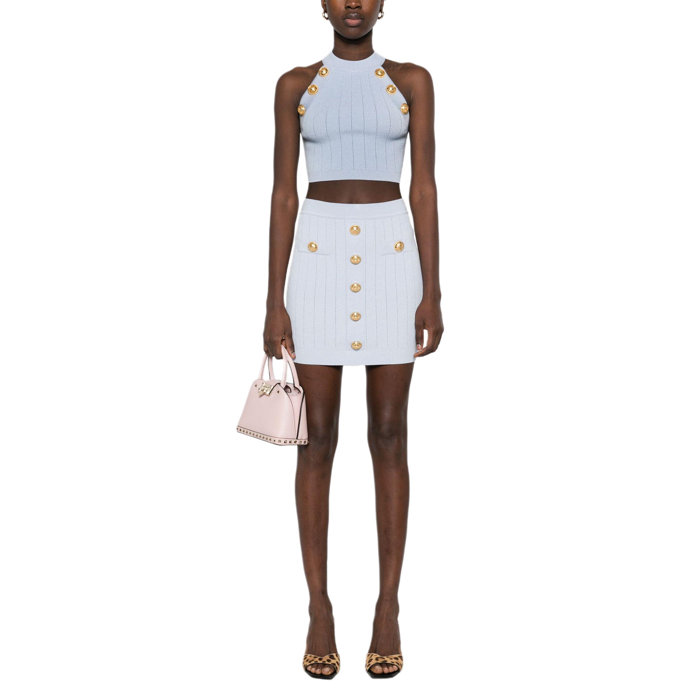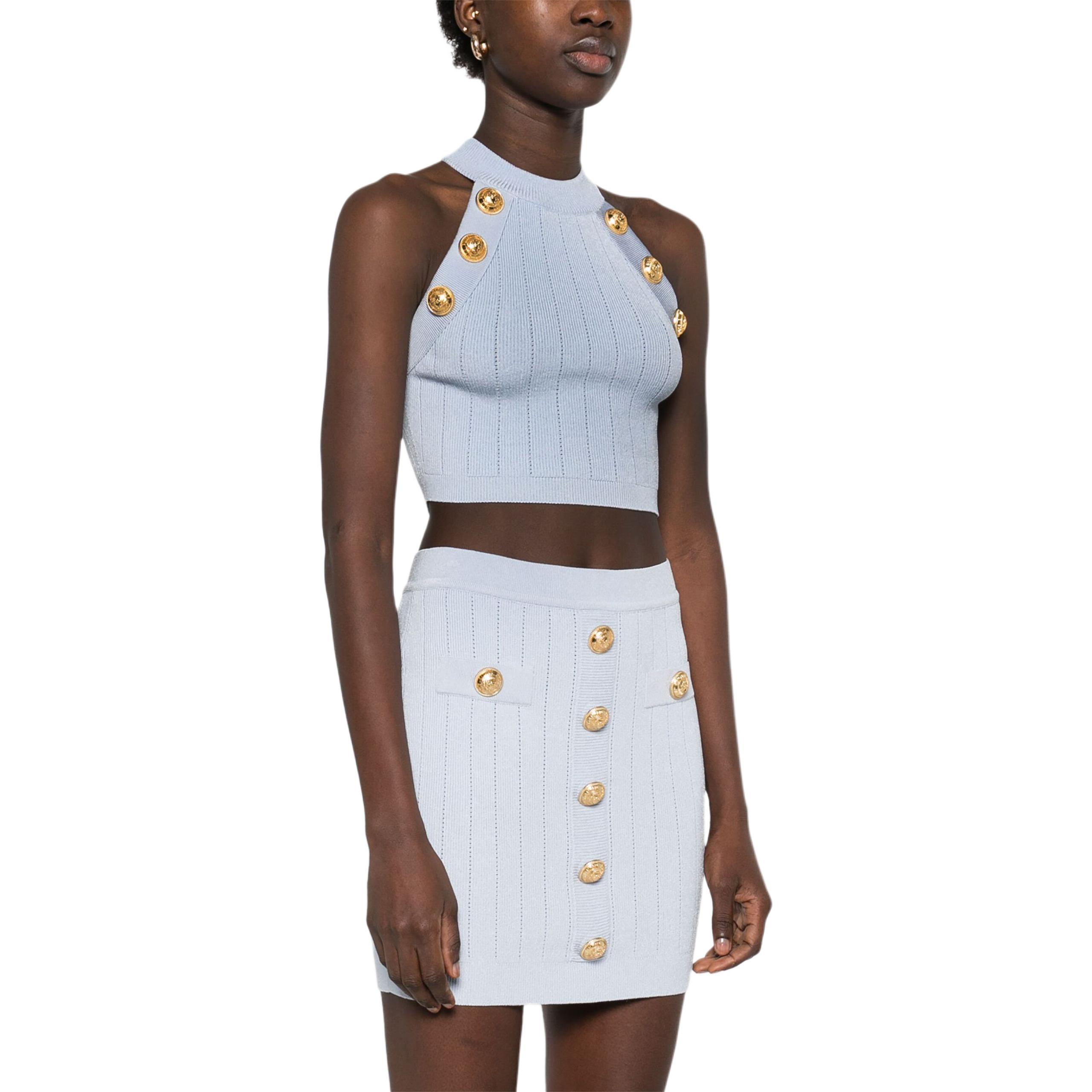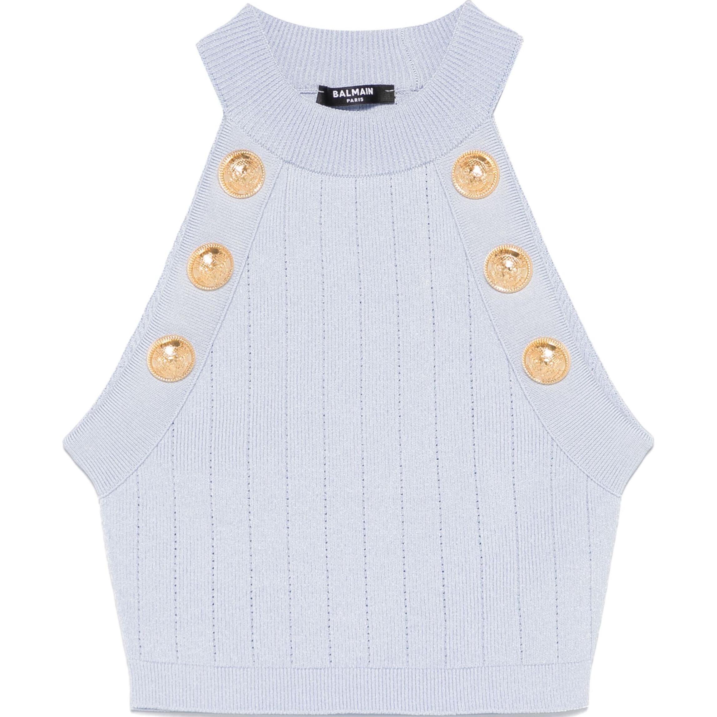 Топ с монетными пуговицами BALMAIN, светло-голубой