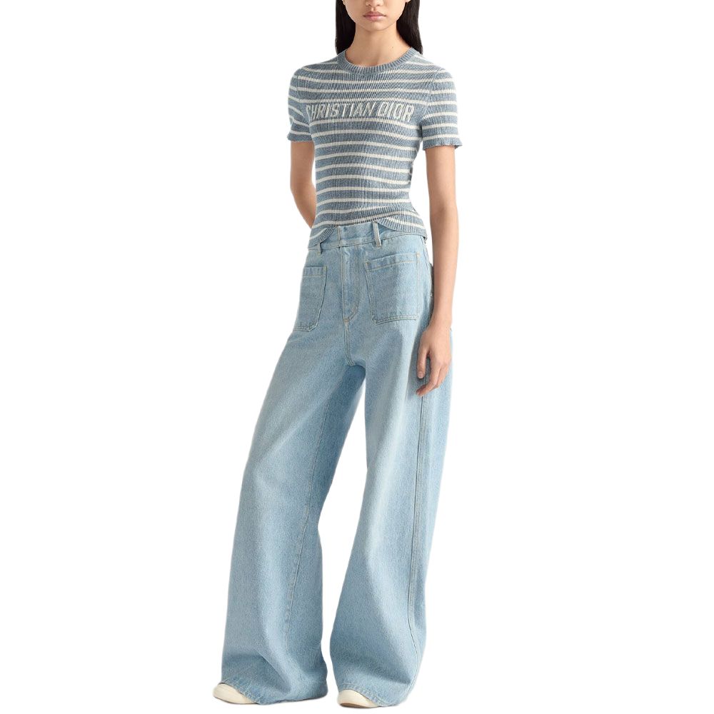DIOR Iviera FW25 Вязаный свитер Women's Denim Blue