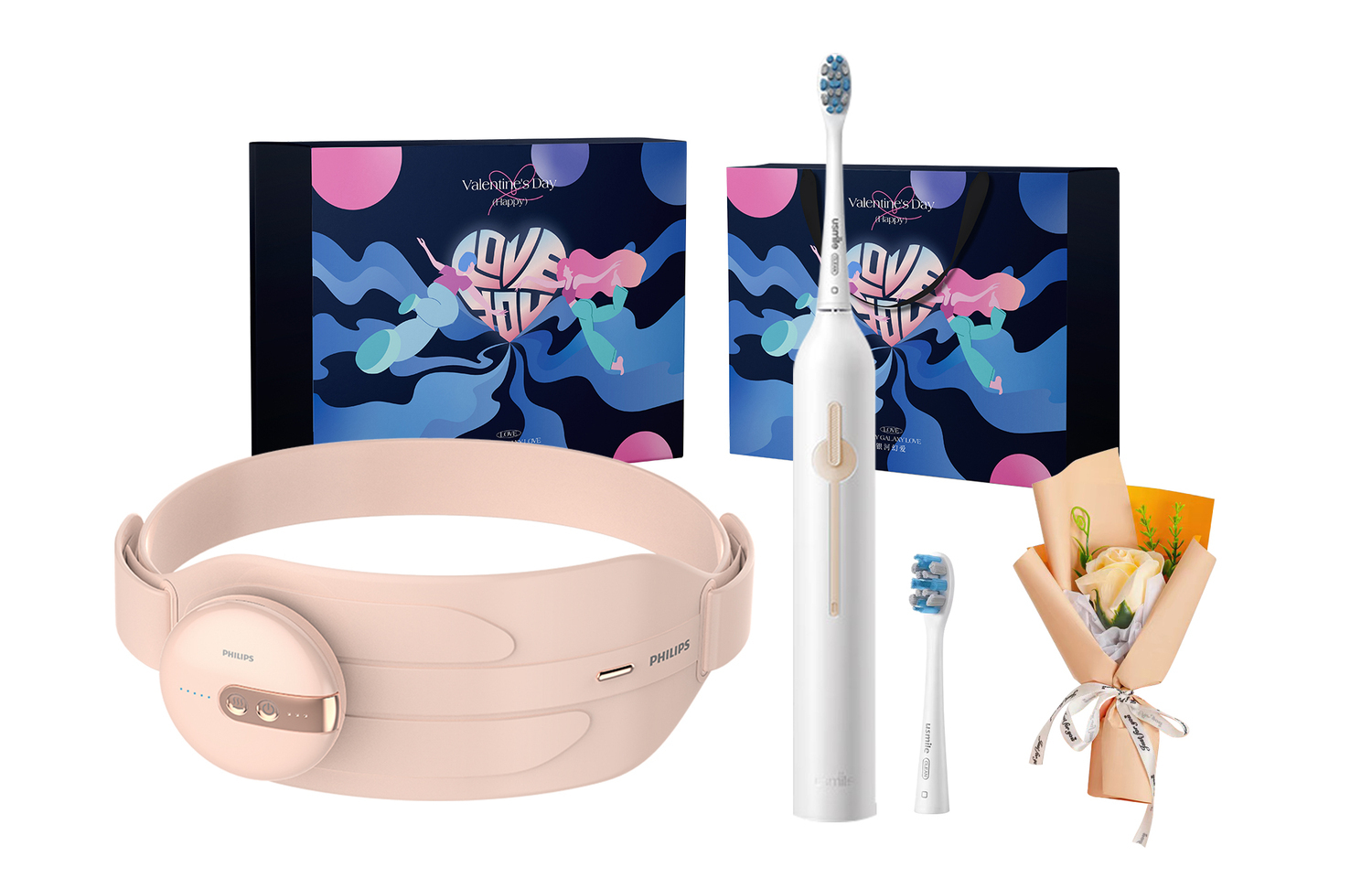 Комплект: подарочная коробка ко Дню святого Валентина + букет