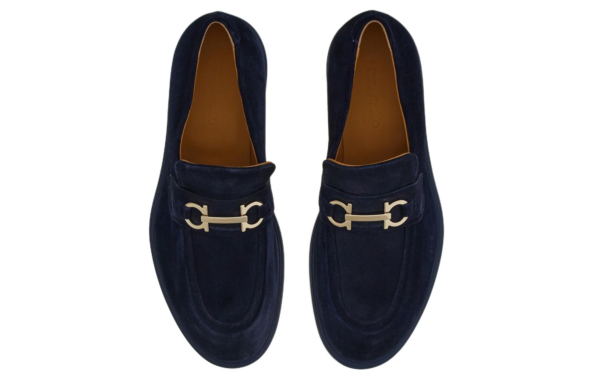 Лоферы из замши с бляжкой Gancini Ferragamo, синий