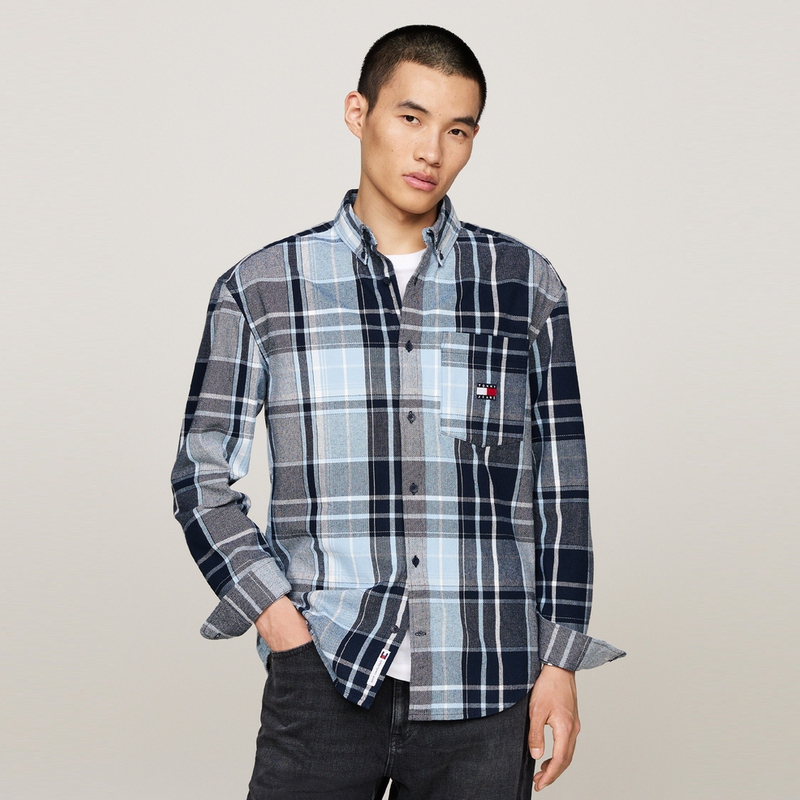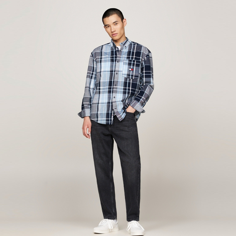 Tommy Hilfiger Рубашка мужская синяя черная клетка