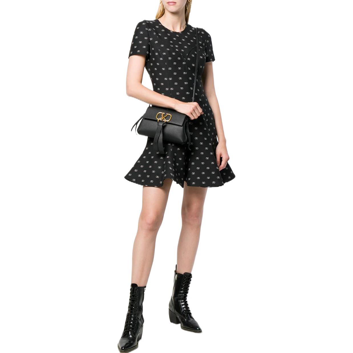 Valentino Женское черное платье с коротким рукавом