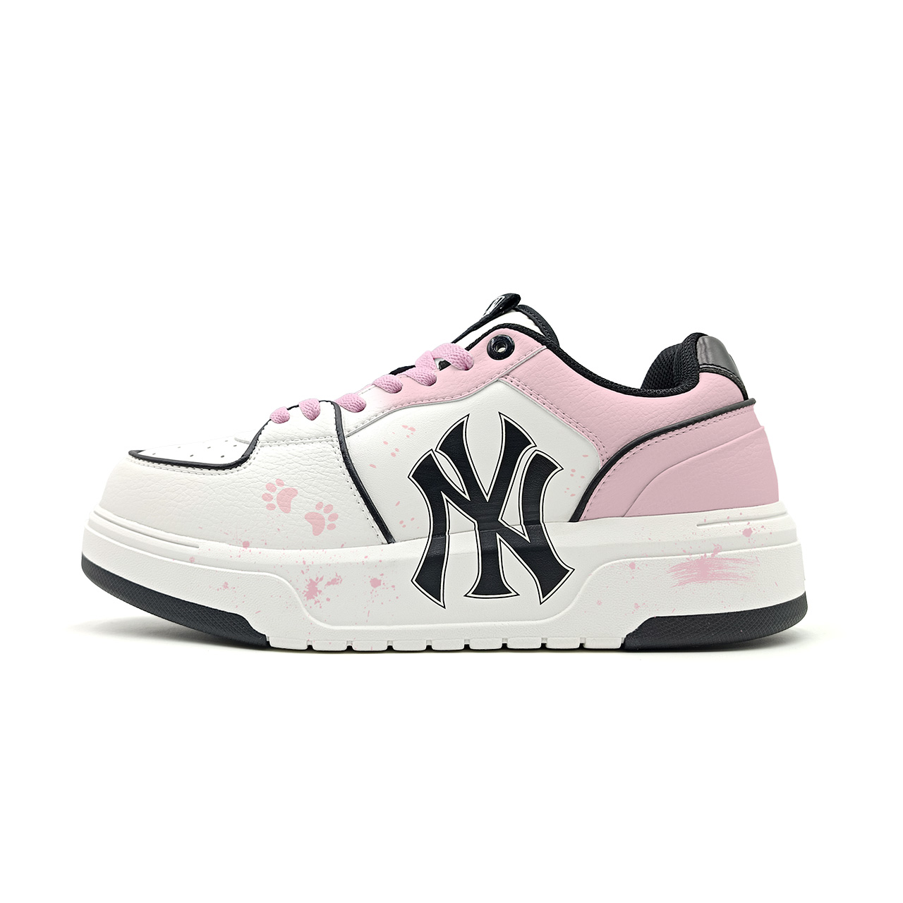 Эти кроссовки созданы на основе оригинальных низких кроссовок MLB Chunky Liner PU Sweetheart Cat Paw Splatter в черном, розовом и белом цветах, унисекс. Вдохновением послужила кошачья лапка в форме сердца.