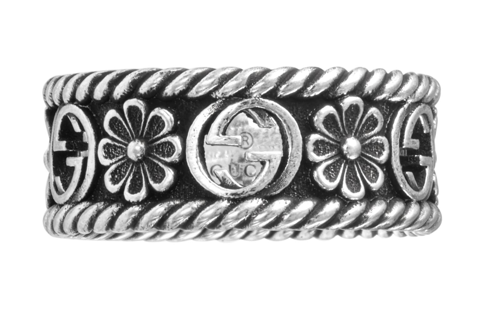 Напоминание: это серебряное украшение изготовлено методом состаривания, что придает ему винтажный, состаренный вид. Следы старения на изделии - нормальное явление. Обратите внимание, что гравировки могут быть связаны в некоторых размерах. Цветочный узор чередуется с ажурным узором Interlocking G, а края тщательно отделаны декоративной плетеной кромкой, что придает этому кольцу из стерлингового серебра с гравировкой изысканный вид. Interlocking G, являясь фирменным элементом бренда, всегда выражал глубокое уважение к его основателю, г-ну Гуччио Гуччи, различными способами. Этот дизайн воплощает в себе благородный и элегантный стиль, создавая уникальный аксессуар.